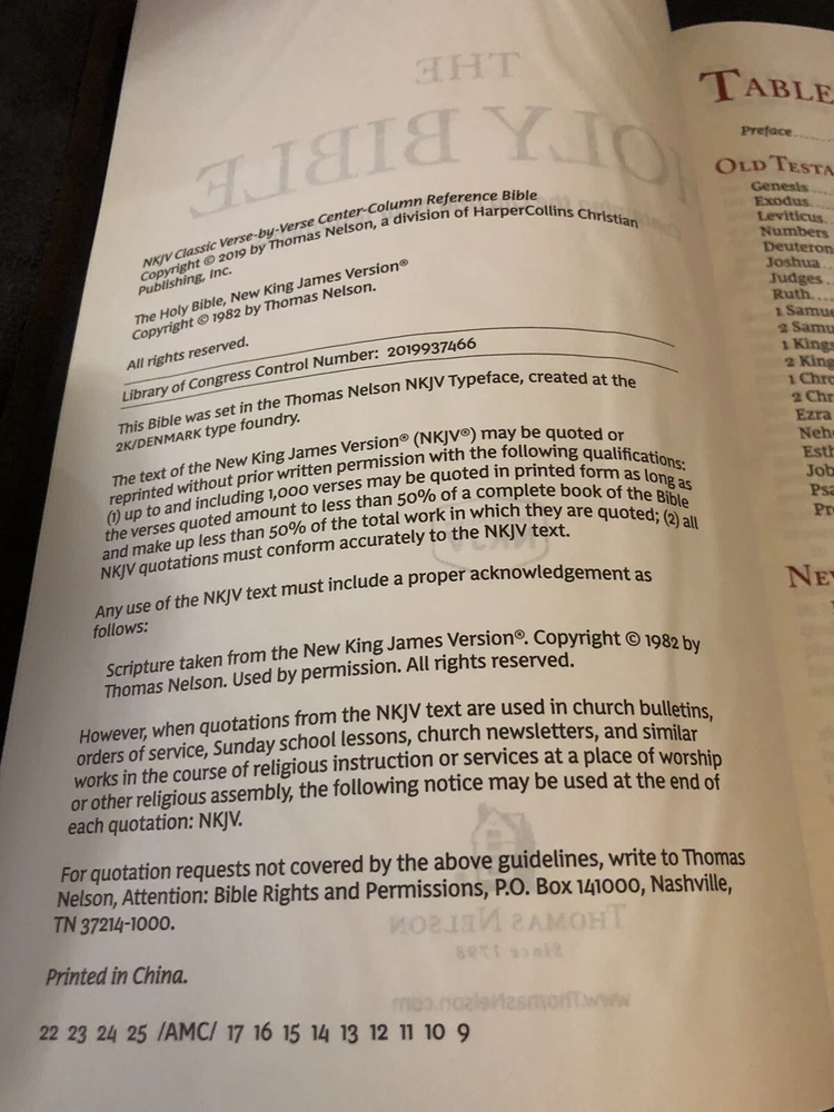 NKJV New King James Version center column reference bible Leather Cowhide. No markings Genuine cowhide leather...