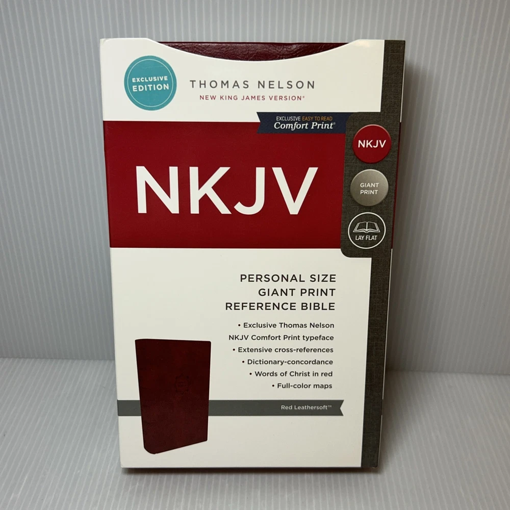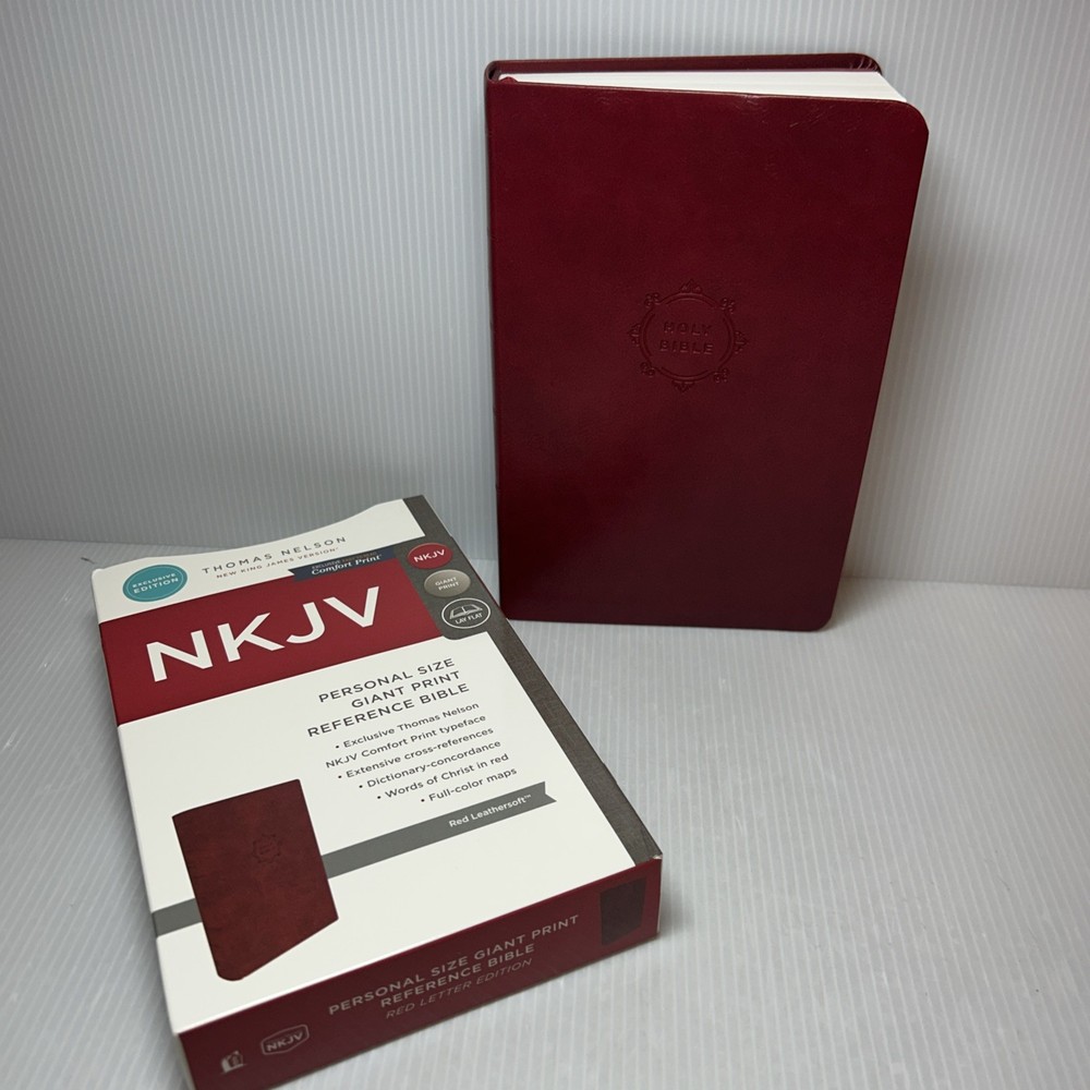 NKJV Personal Size GIANT PRINT Reference BIBLE, Nelson Red LeatherSoft, Lay Flat Like New - I don’t see any writing or highlighting. Please see pictures.