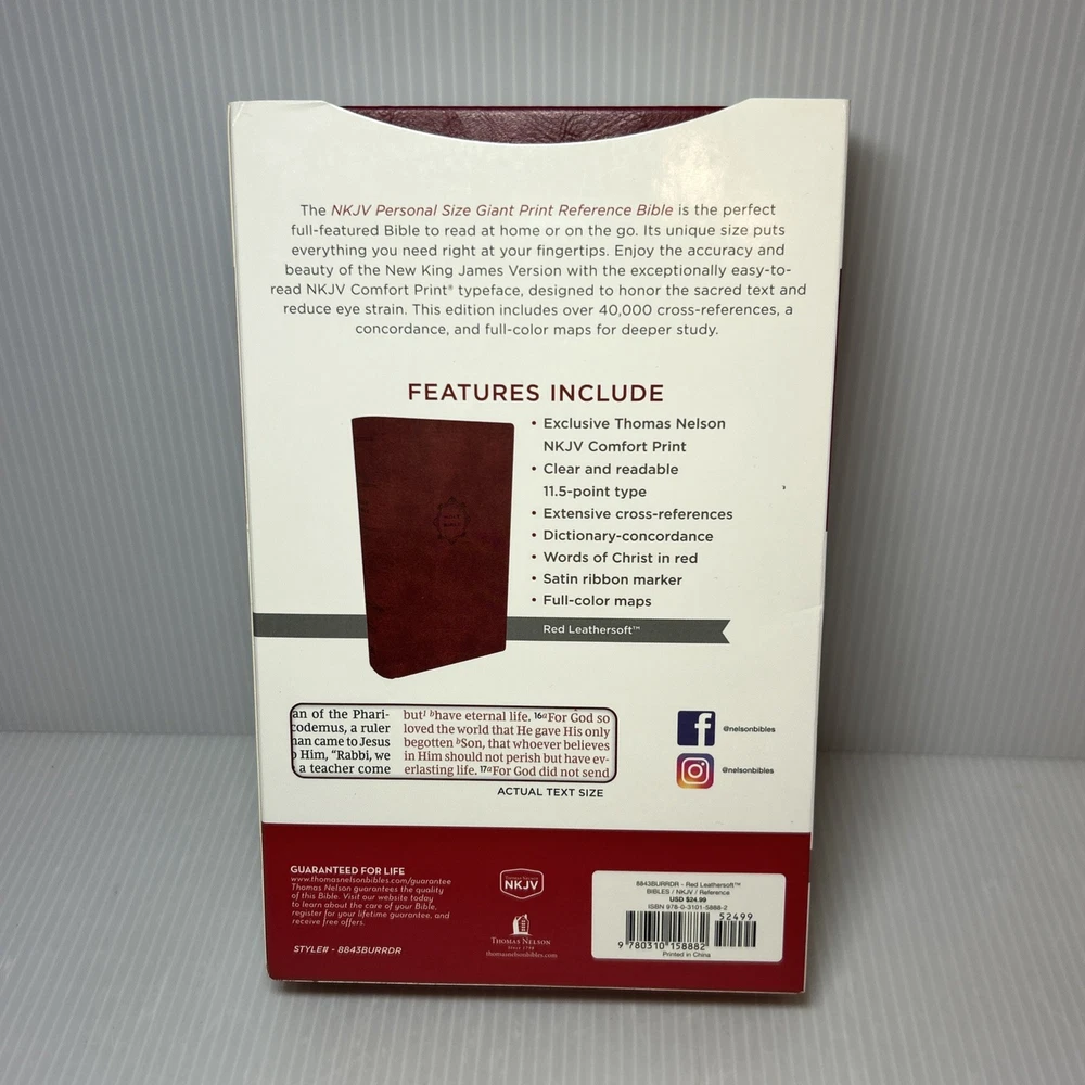 | Features | Large Print, Faux Leather Bound, Reference, Red Letter |