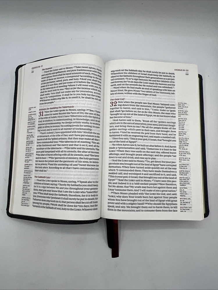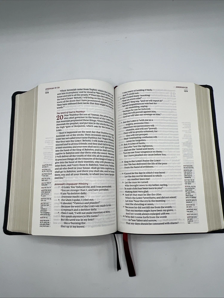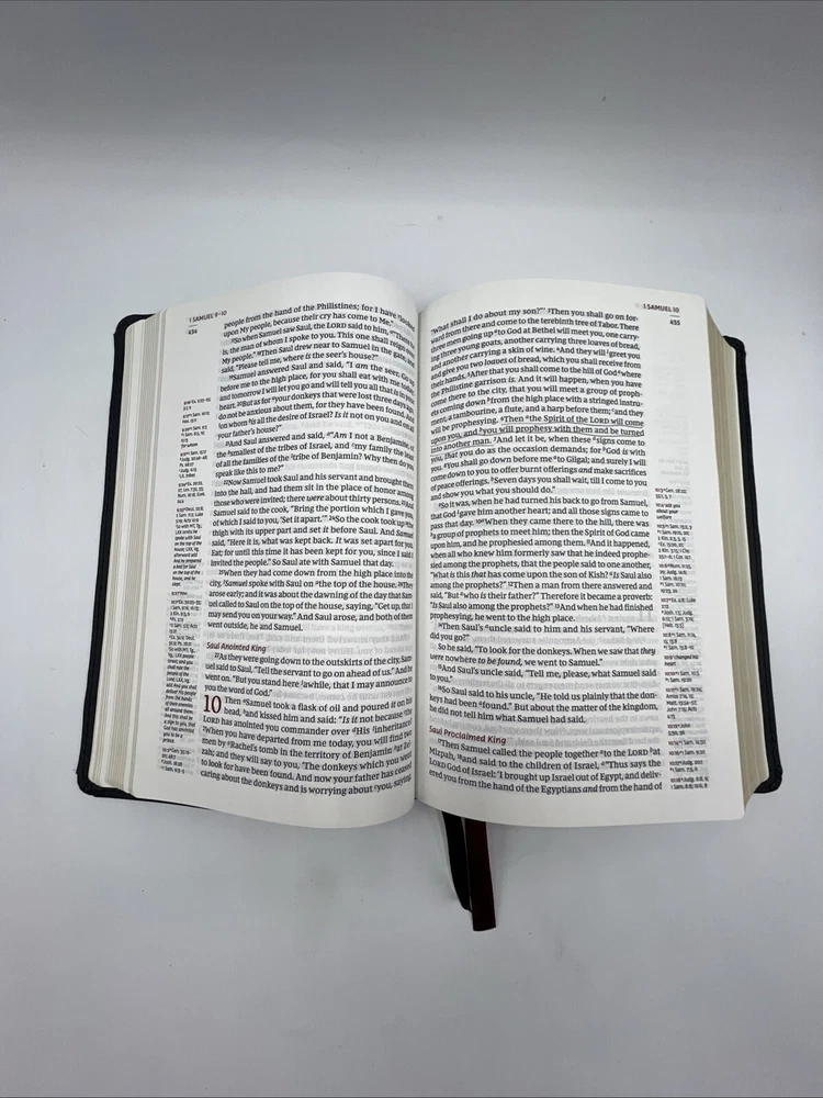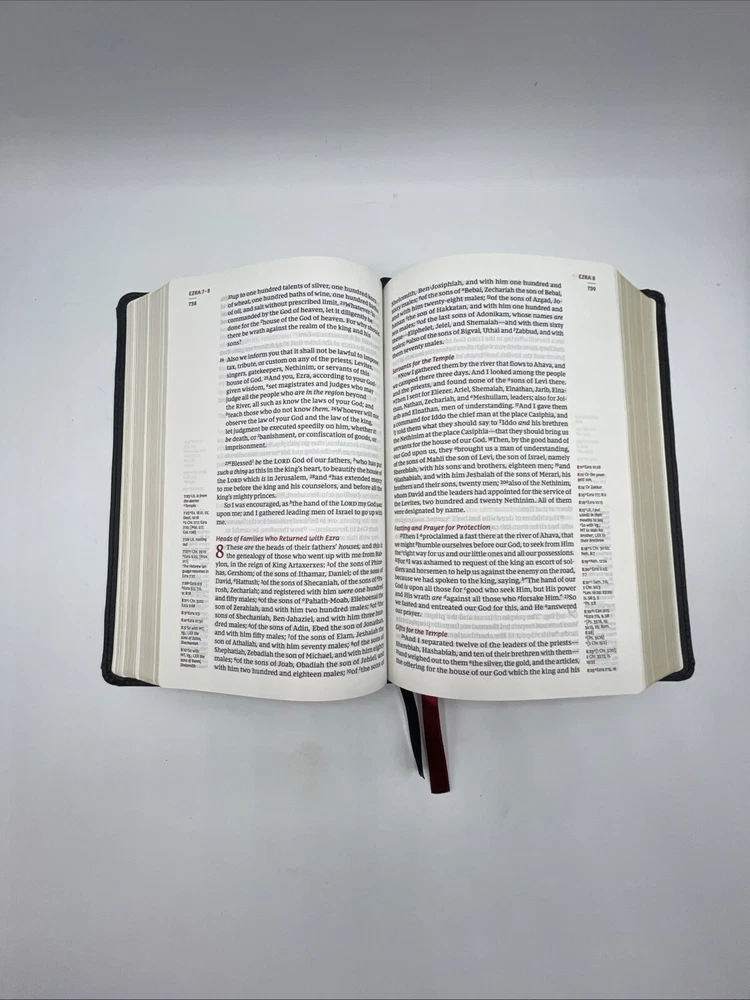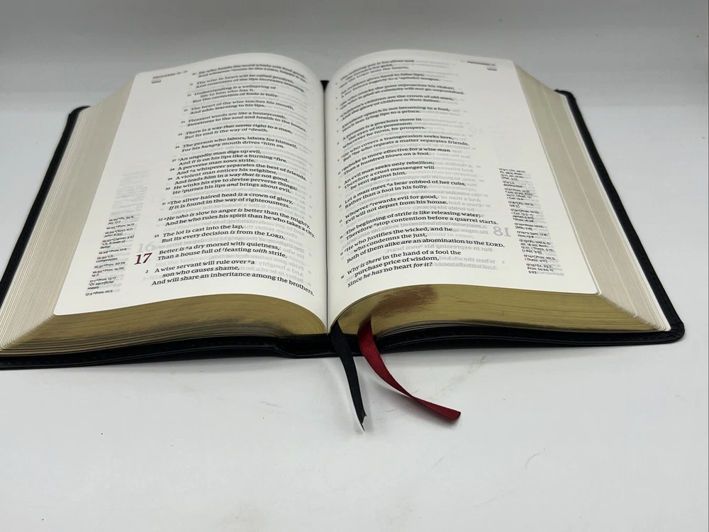 Wow! The Bible I had ordered arrived today and I could not be happier! It arrived faster than expected. It was safely and securely boxed for shipping (which was a nice touch!) The condition is excellent, and just as described (and pictured) by the seller. The appearance is clean and unmarked. I thought it was a great value, too. This seller deserves an A+. Well done!