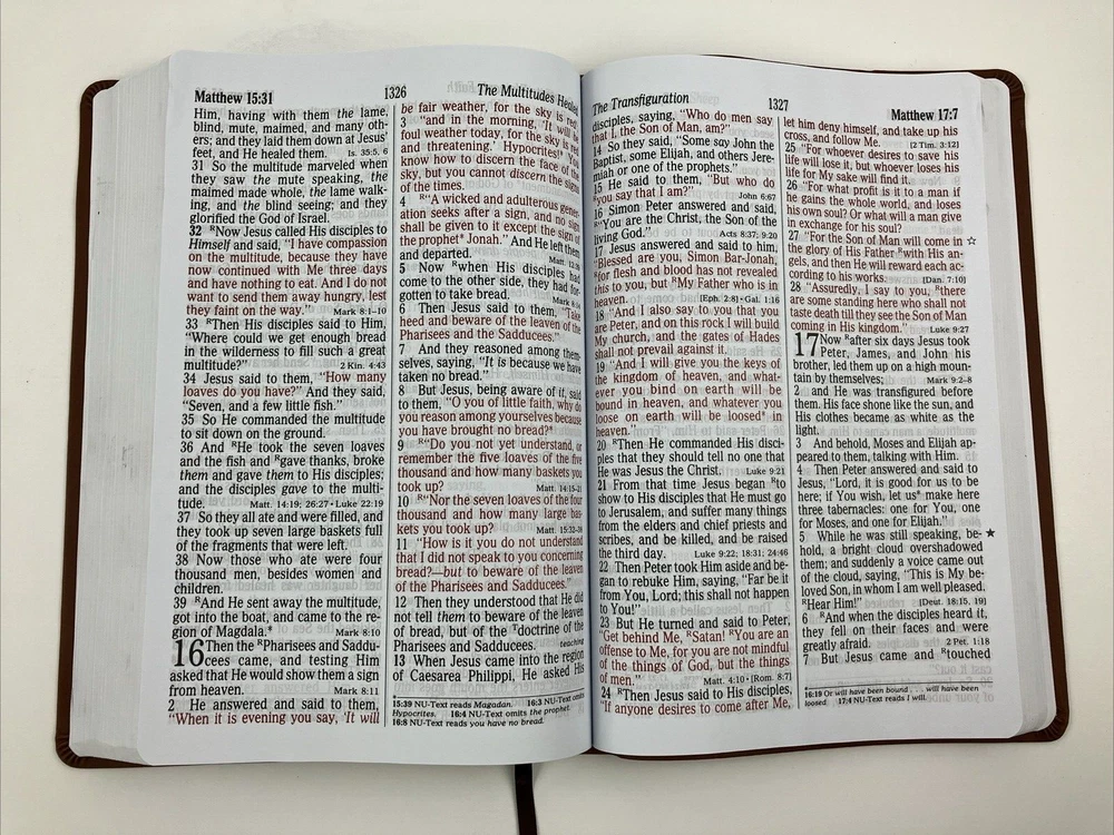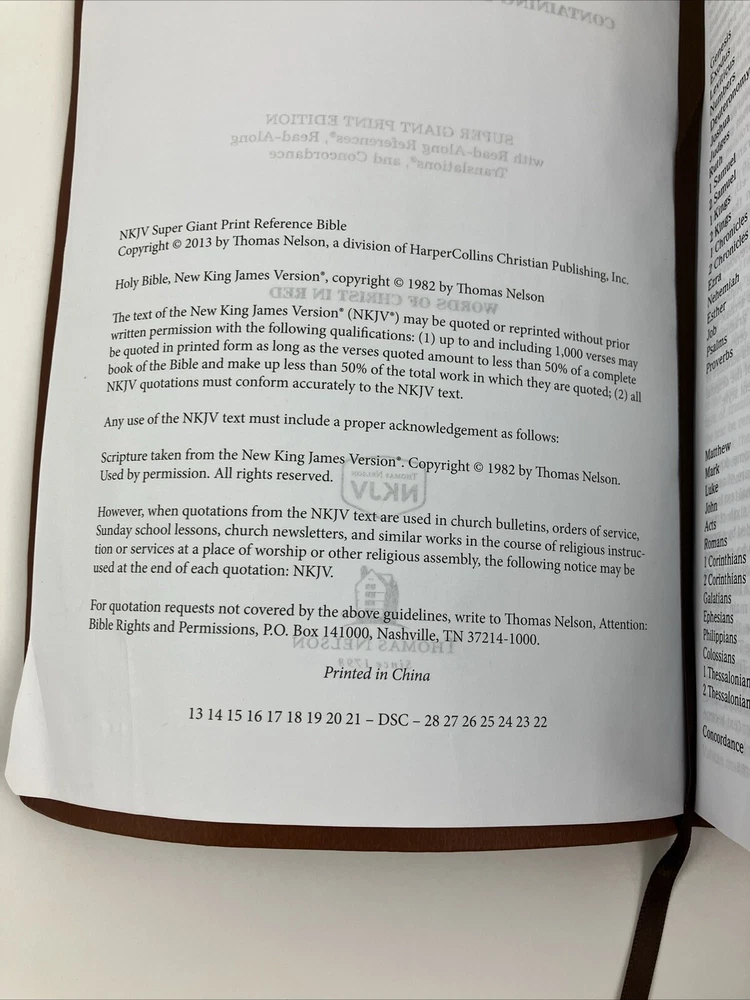 NKJV Super Giant Print Bible by Nelson Bibles Brown Faux Leather Red Letter GOOD CONDITION -- CLEAN COPY/NO MARKINGS ON THE INSIDE (see pics) *Item will be protected well for shipping and comes with a tracking number for confirmation.* I ship out items every day so expect a quick delivery!
