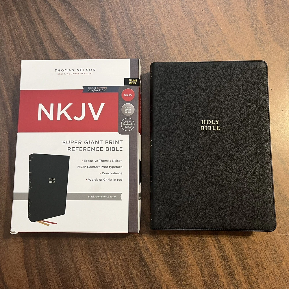 | Book Title | NKJV Holy Bible, Super Giant Print Reference Bible, Black Genuine Leather, 43,000 Cross References, Red Letter, Thumb Indexed, Comfort Print: New King James Version : New King James Version |