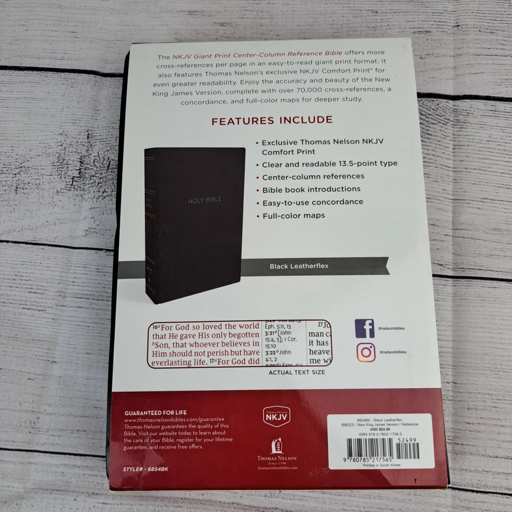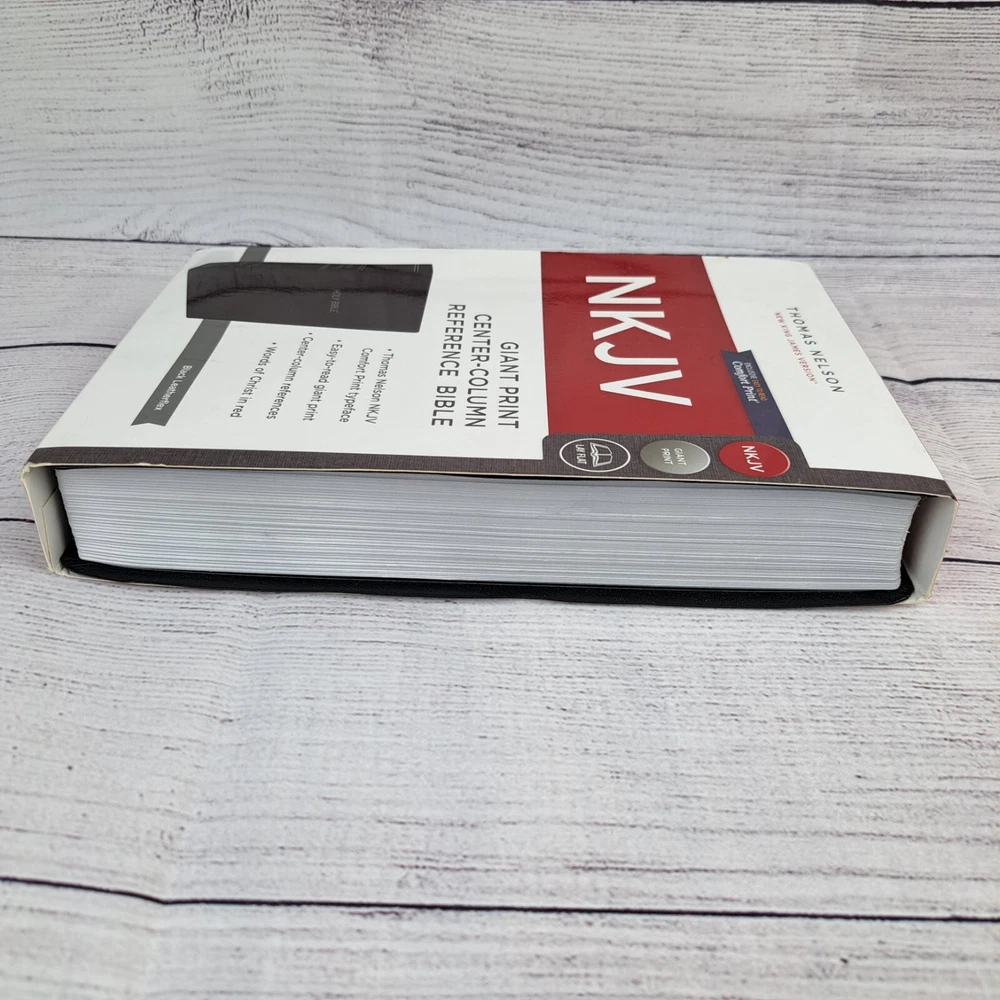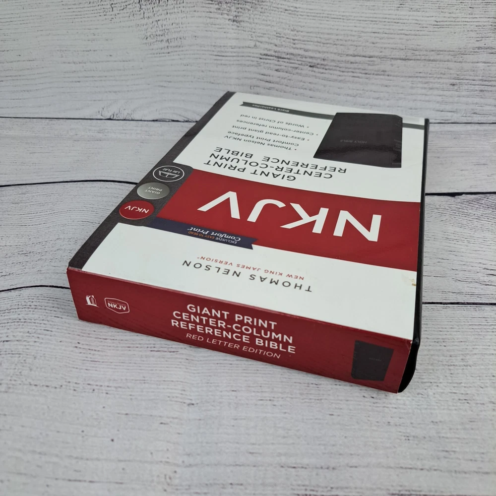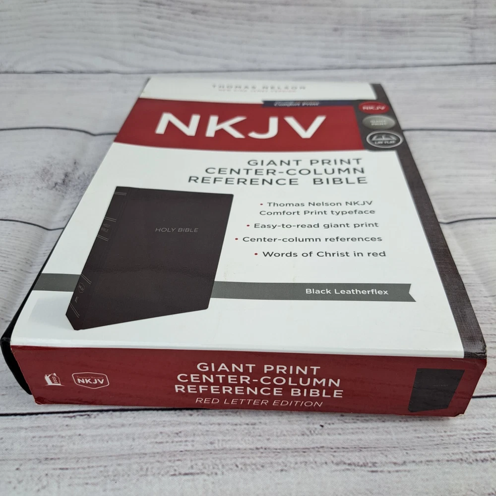 NKJV Thomas Nelson Bible Giant Print Center Column Reference Black Leather Flex This Bible is pre-owned and may show signs of age, wear or other imperfections. Please review the provided photos to determine physical condition. Please note that due to lighting and device settings, there may be some variation in color. International shipping will be handled by the eBay international shipping program. No shipping to Hawaii or Alaska.