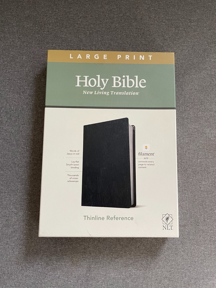 Title: "NLT Large Print Thinline Reference Bible, Filament Enabled Edition Description: CONDITION: Pre-owned with normal signs of wear and tear. The cover, spine, and back show visible scuffs, some pages may have creases and there may be some staining on the front and back cover. Please refer to the images to better understand the item's condition. Details: Returns: We offer a 100% money-back guarantee. If the item does not meet your expectations, you can return it for a full refund. Shipping: The item will be dispatched within one business day upon receiving payment. Thank you for considering this item. Should you have any inquiries, concerns, regarding the product or service, please don't hesitate to get in touch. Your satisfaction is our priority, and we are committed to ensuring your complete contentment. Thank you for your purchase. "Optimize your shipping costs by acquiring multiple items! We are delighted to combine shipping for multiple purchases." Please feel free to reach out if you have any further questions. When shipping a book, it typically goes through media mail unless there's a request for expedited shipping.
