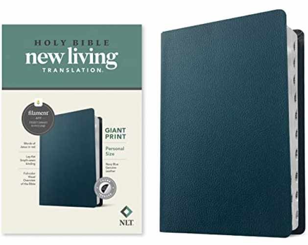 NLT Personal Size Giant Print Bible, Filament Enabled (Genuine Leather, Navy Blue, Indexed, Red Letter) Description: It's a preowned item in good condition and includes all the pages. It may have some general signs of wear and tear, such as markings, highlighting, slight damage to the cover, minimal wear to the binding, etc., but they will not affect the overall reading experience. Product ID: 1496474260-11-1