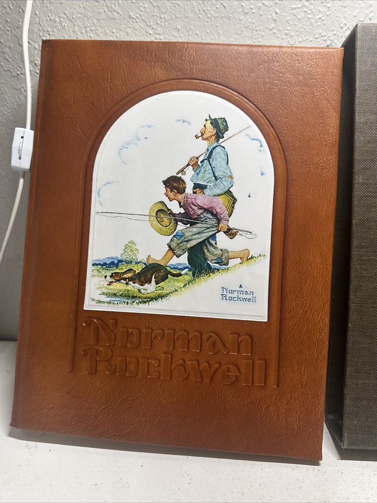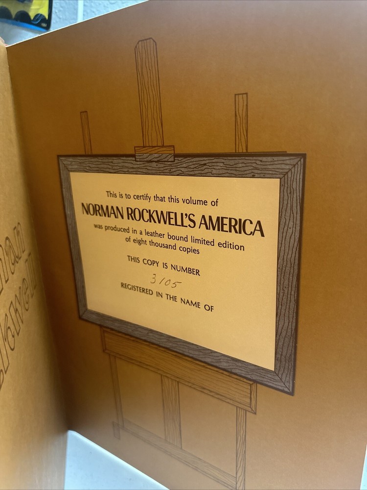 Explore the beautiful world of Norman Rockwell's America through this limited edition leather-bound book. Written by Christopher Finch, this biography showcases the artist's life and work. The book features exquisite illustrations and is bound in handcrafted mission leather, making it a treasure for any art and culture enthusiast. Published by Harry N. Abrams in 1975, this book is a must-have for collectors and fans of Norman Rockwell's art. The English language book is part of the Brown and Bigelow Handcrafted Mission Leather Book series. It is a non-fiction narrative that provides a fascinating insight into the artist's life and his unique artistic style.