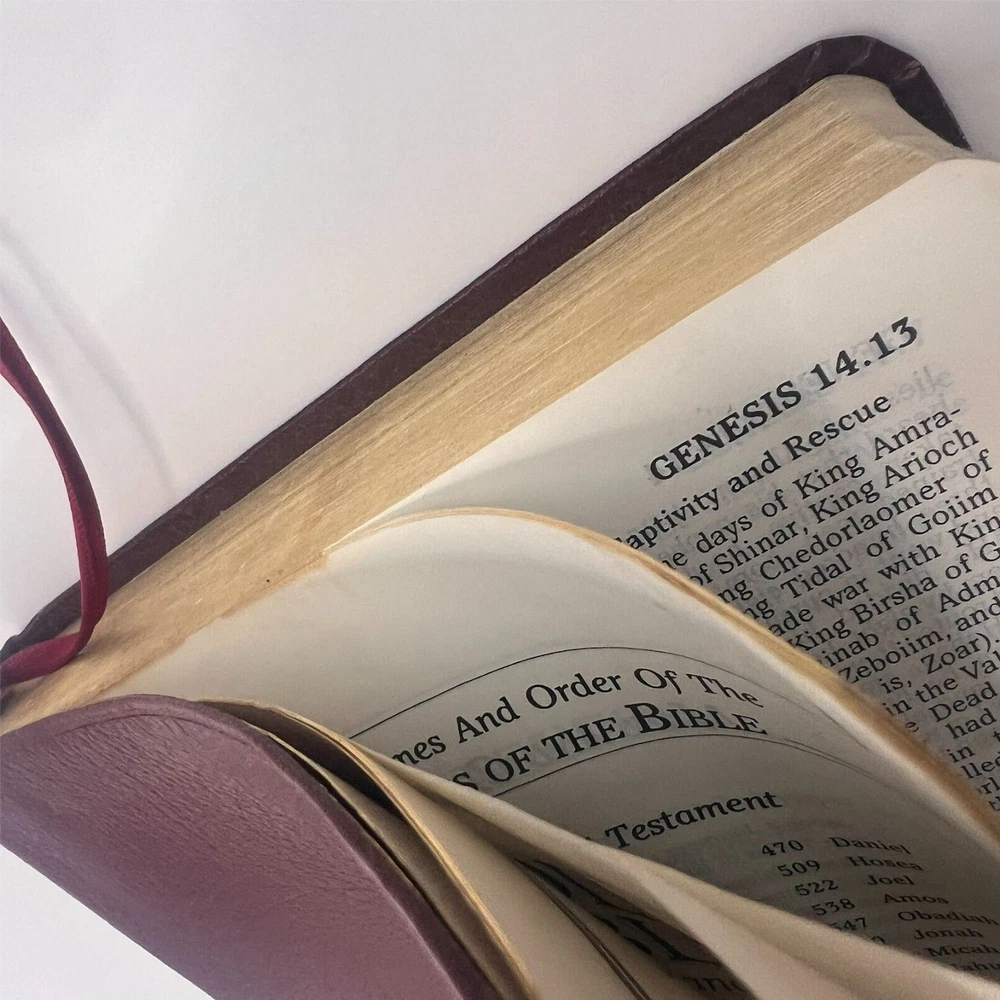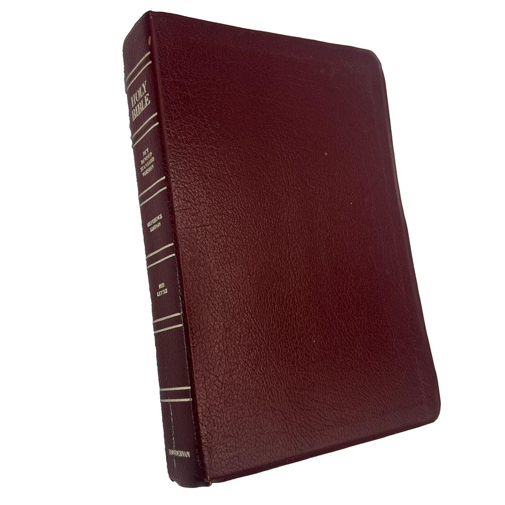 Explore the depths of faith with the NRSV Reference Bible from Zondervan, bound in a sleek burgundy leather cover designed for both durability and elegance. This edition, published in 1990, features a comfortable 8.5-inch by 5.5-inch size, making it an ideal companion for both personal study and on-the-go reading.