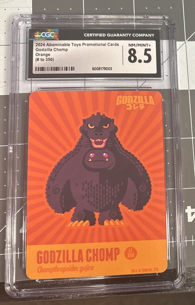 This rare and highly sought-after NYCC 2024 GCG NM/MINT 8.5 Godzilla Chomp Card #099/350 by Plastic Empire is a must-have for any serious collector of non-sport trading cards. With its unique features and high-quality plastic material, this card is sure to be a standout addition to your collection. The card is from the Chomp franchise and features a stunning Godzilla design. It was manufactured in 2024 and is a promo card, making it an even more valuable addition to your collection. Don't miss out on the opportunity to own this incredible card.