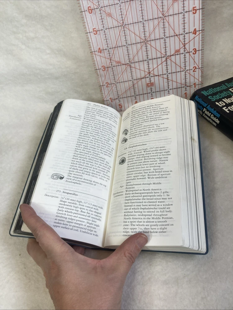 National Audubon Society Field Guide to North American Fossils. Eleventh printing from 1997. Spine, faux leather cover, and dust jacket are are all intact with some wear from field use. Pages are all present and intact with some minor corner folds. All photos and maps are clear and readable. Ships via USPS Media Mail.