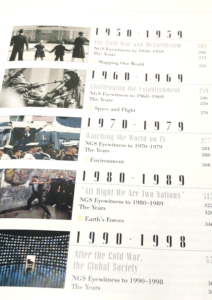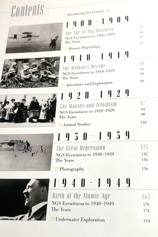 National Geographic Eyewitness to the 20th Century From Estate in California This deluxe edition of National Geographic's "Eyewitness to the 20th Century" is in very good, pre-owned condition. Profusely illustrated, the informative text is absorbing offering an insight into this historical period of time. Faux leather bound, the paper edges are gold trimmed and there is a satin ribbon place holder. Shipping and handling is 6.95 for USA only. International shipping costs will be calculated by location. A shipping discount will apply on multiple purchases when combined on a single invoice. When purchasing more than one item, please request total from seller to ensure combined shipping discount. Be sure to visit Two Pink Flamingos' Store and add us to your Favorites List! Questions? Feel free to email twopinkflamingos by sending message through eBay.