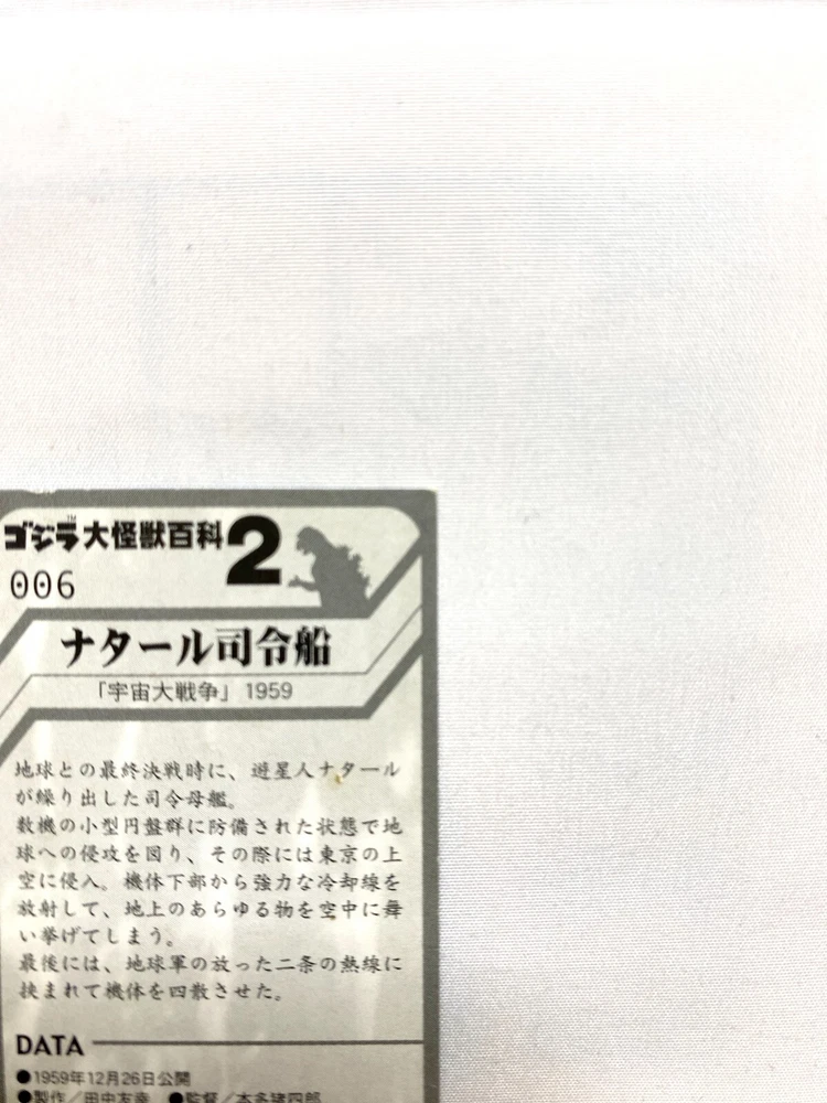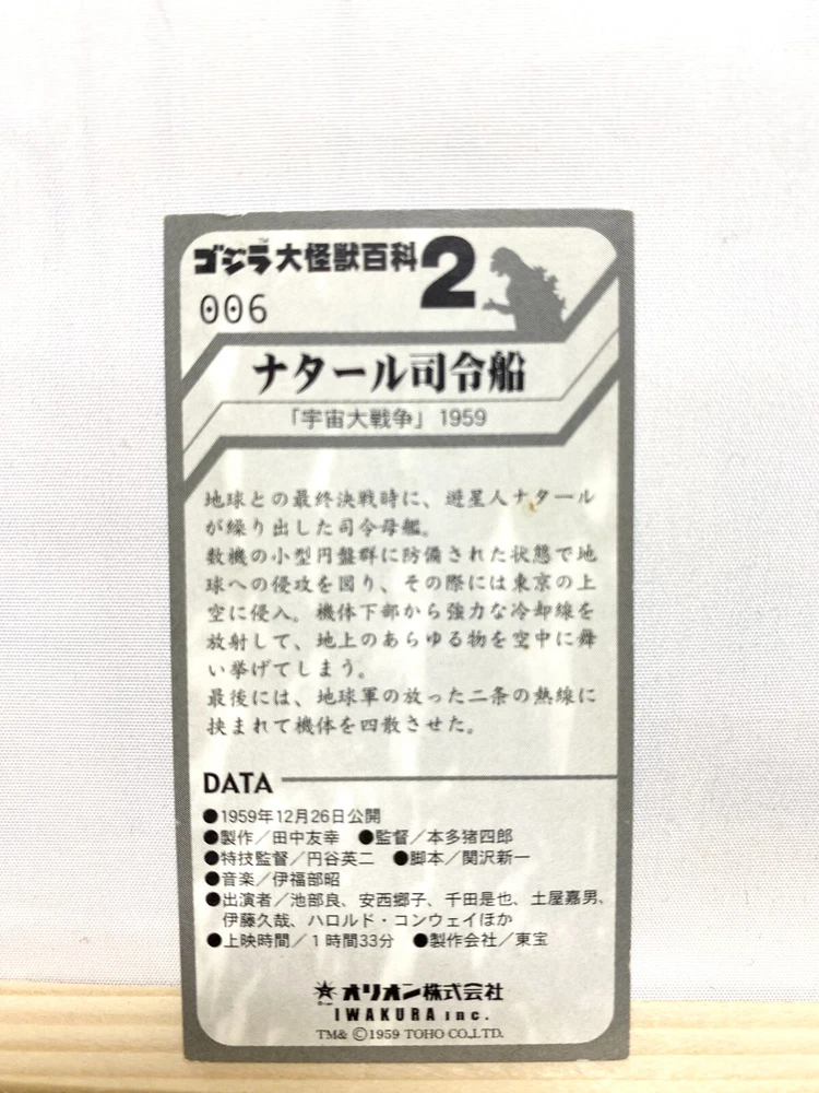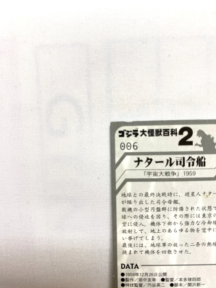 You can get a discount if you buy the products in bulk Please select multiple items you would like to purchase and send us a message. I would be happy if I could make a good deal with you. Send us the URL of the product you want. If you don't know, send us the product number. "a-ri-ga-to-u" I live in Tokyo, Japan. I sell Japanese original goods and character goods. Please feel free to say "Hi" if you find the item that you want. Description [Title] Naturl Command Ship Godzilla Monster Encyclopedia 2 Card SFX TOHO TCG No.006 [Condition] Used."" Please judge with photos."" Shipping Economy Shipping [ No Tracking number , Japan Post Airmail] : Cost Free, About 2-3 weeks to arrive --Shipping-- Shipping from Japan Ship to Worldwide Airmail (No insurance & No tracking number, about 7-14 days to USA.) tracking number +4$ (Insurance & Tacking number, about 7-14 days to USA.) EMS +30$ (insurance &tracking number 3-7 days to USA.) International Buyers - Please Note: Import duties, taxes and charges are not included in the item price or shipping charges. These charges are the buyer's responsibility. Please check with your country's customs office to determine what these additional costs will be prior to bidding/buying. These charges are normally collected by the delivering freight (shipping) company or when you pick the item up - do not confuse them for additional shipping charges. We do not mark merchandise values below value or mark items as gifts - US and International government regulations prohibit such behavior.