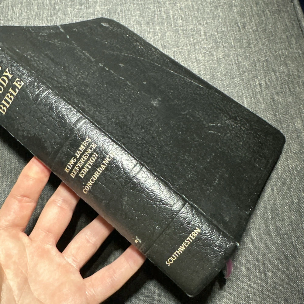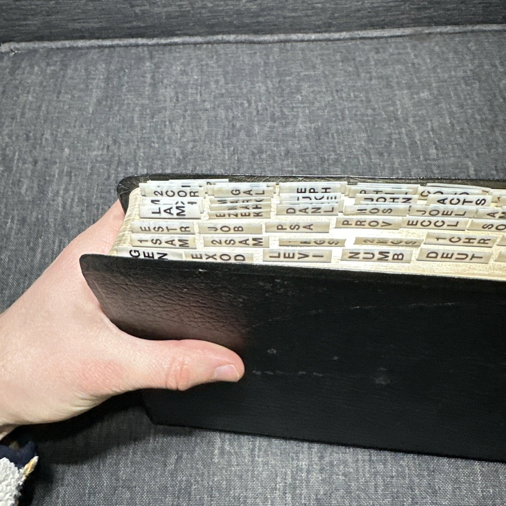 Awesome vintage leather study Bible see photos for the exact one you’ll receive. Thanks!
