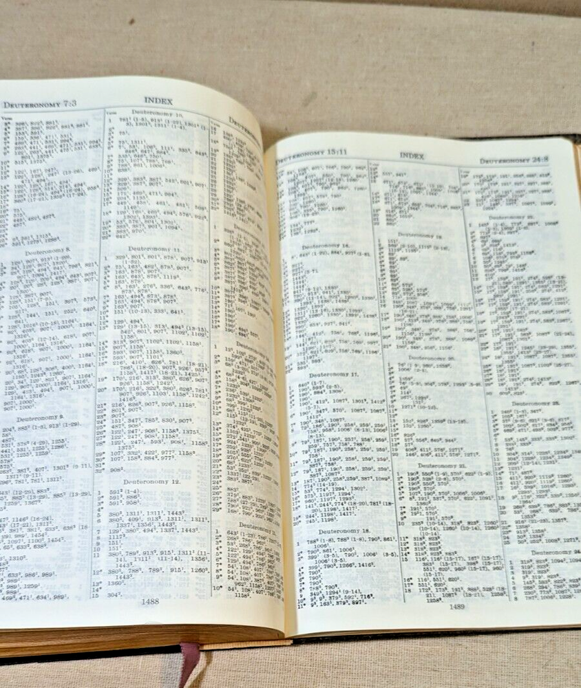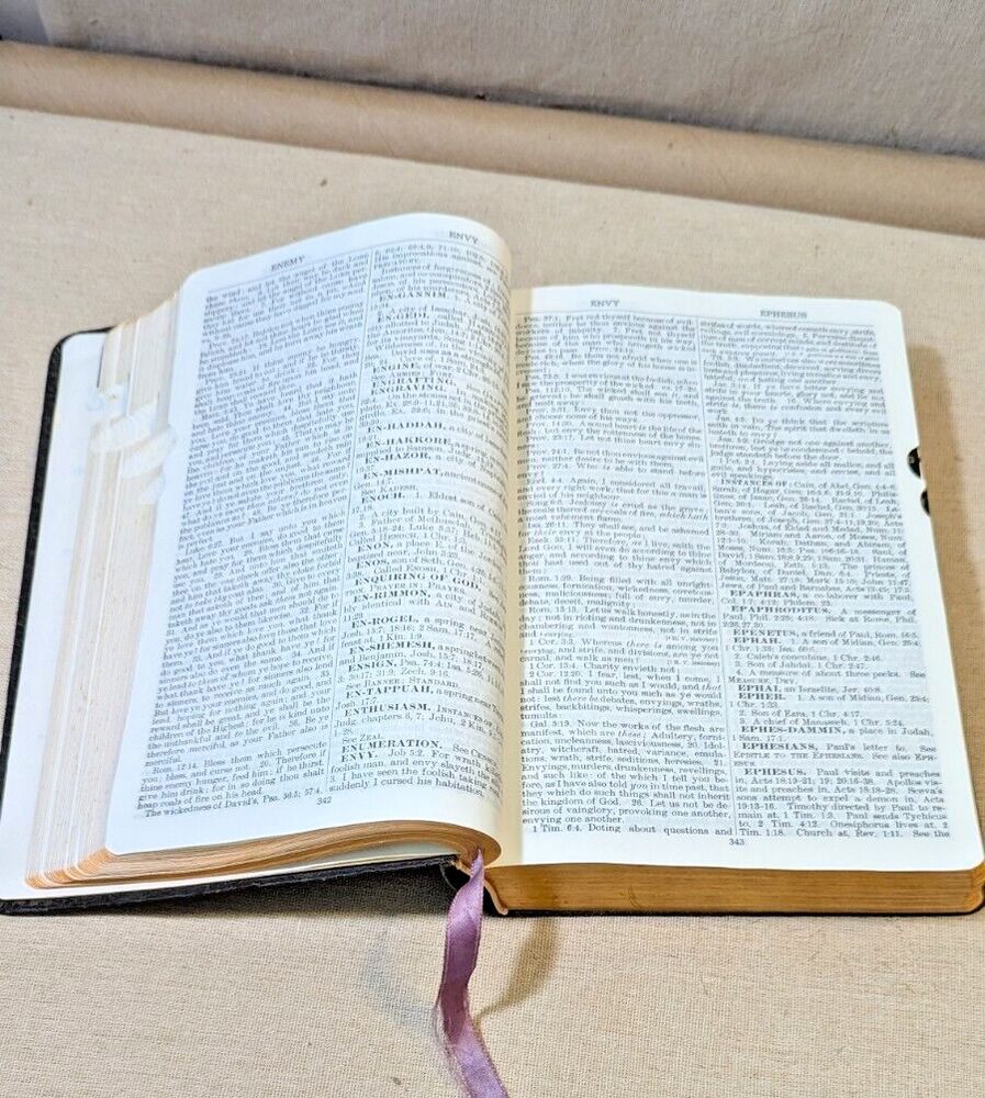 Nave’s Topical Bible A Digest of the Holy Scriptures Indexed Faux Leather 1962, There are creases on the cover but no marks on the pages.