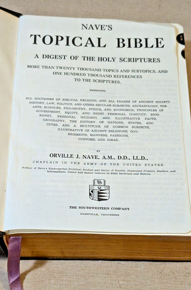 Nave’s Topical Bible A Digest of the Holy Scriptures Indexed Faux Leather 1962, There are creases on the cover but no marks on the pages....