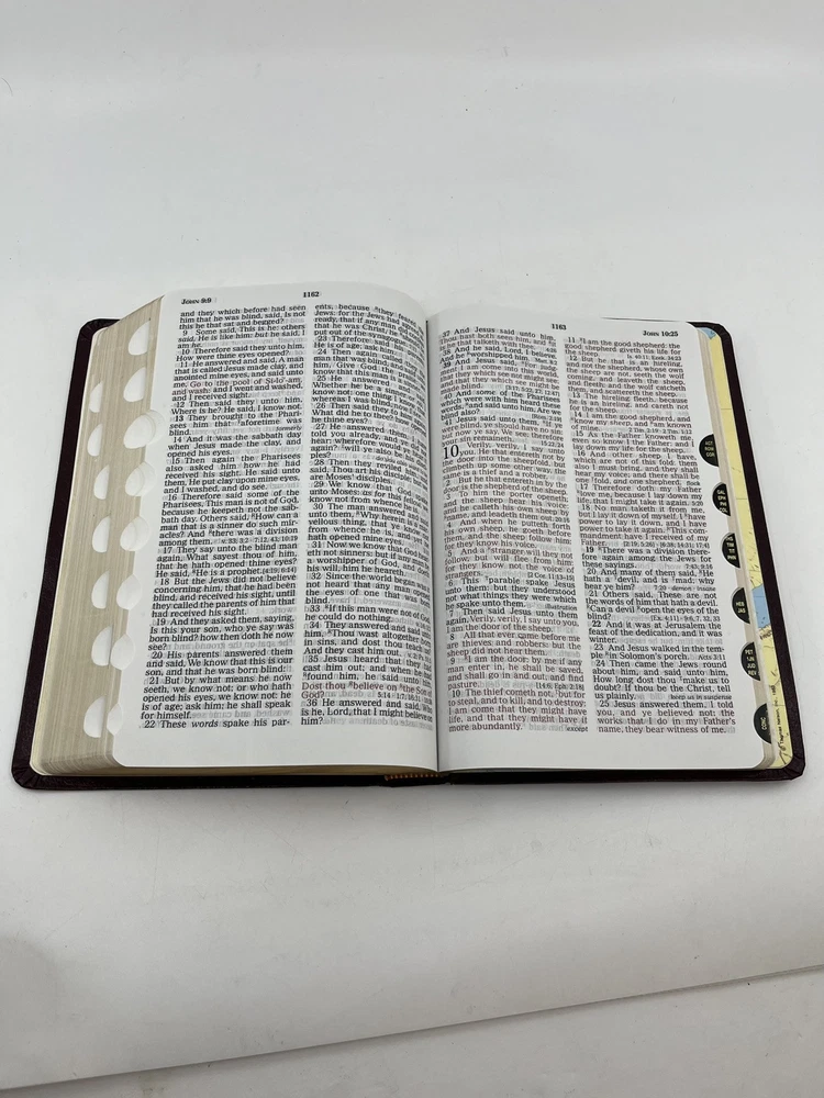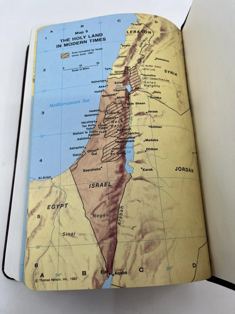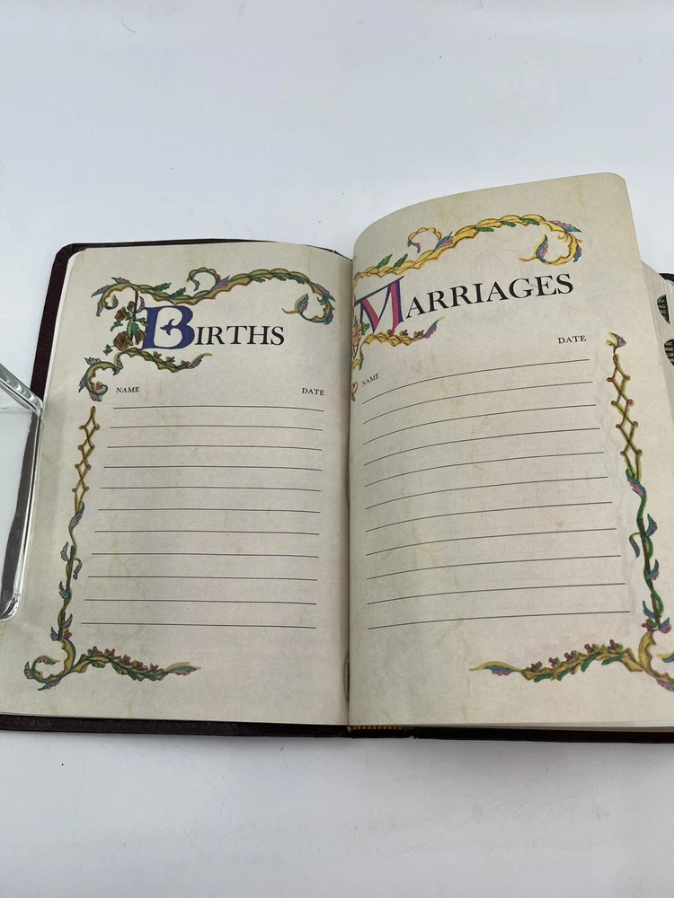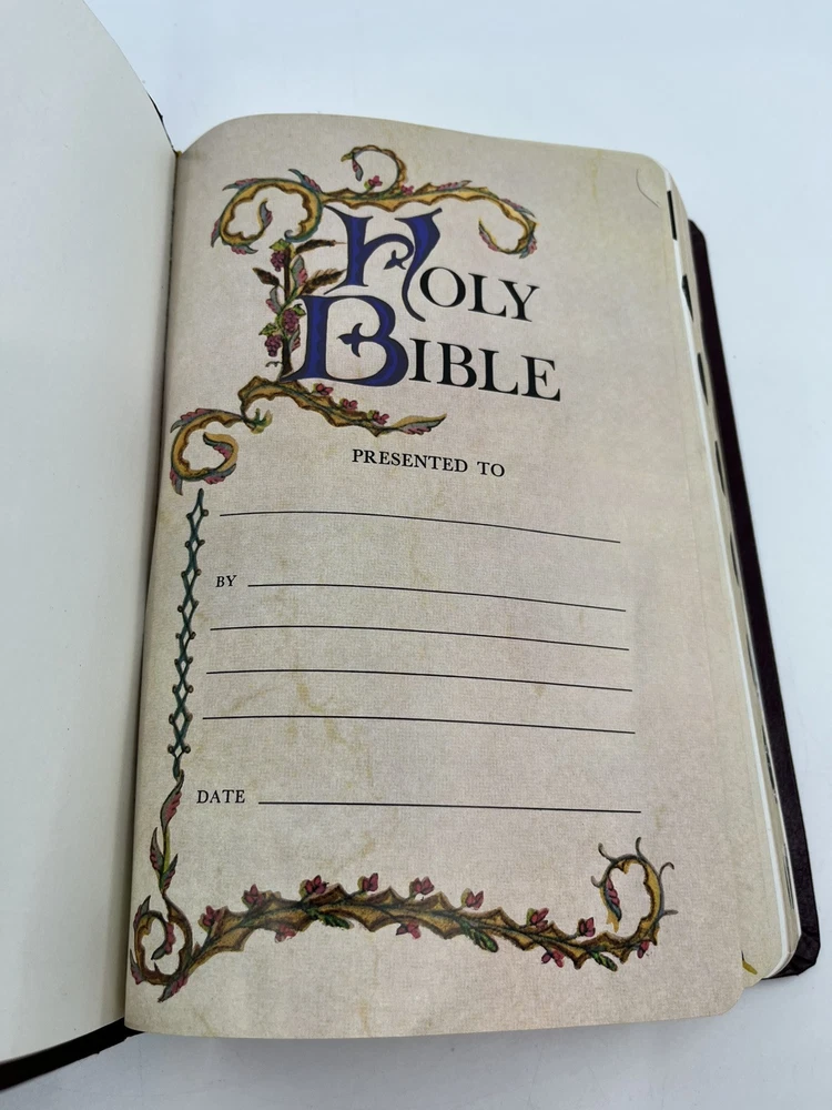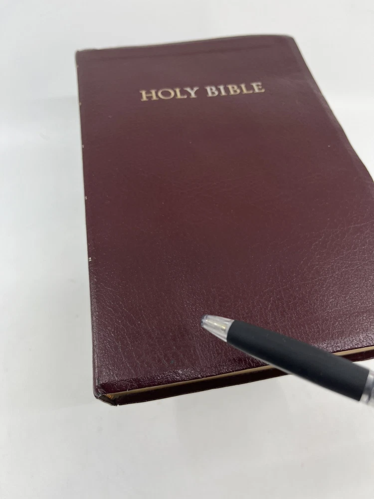Bible is preowned but in very good condition. There are no marks, highlighting, notes or underlining on any of the pages. The front cover has a slight crease - see photo 24....