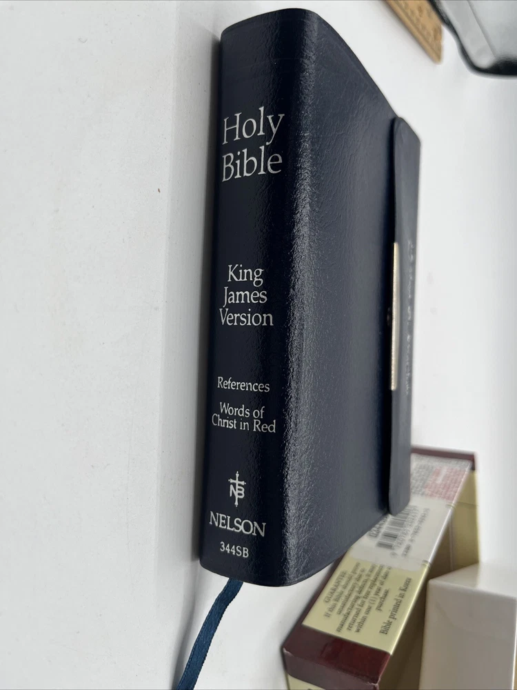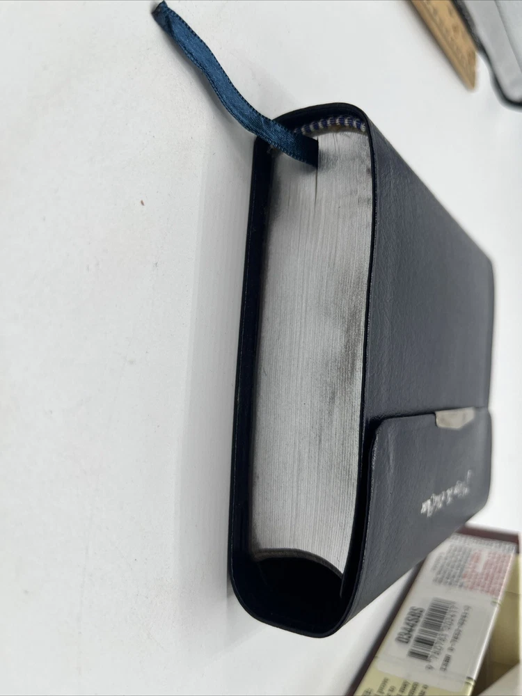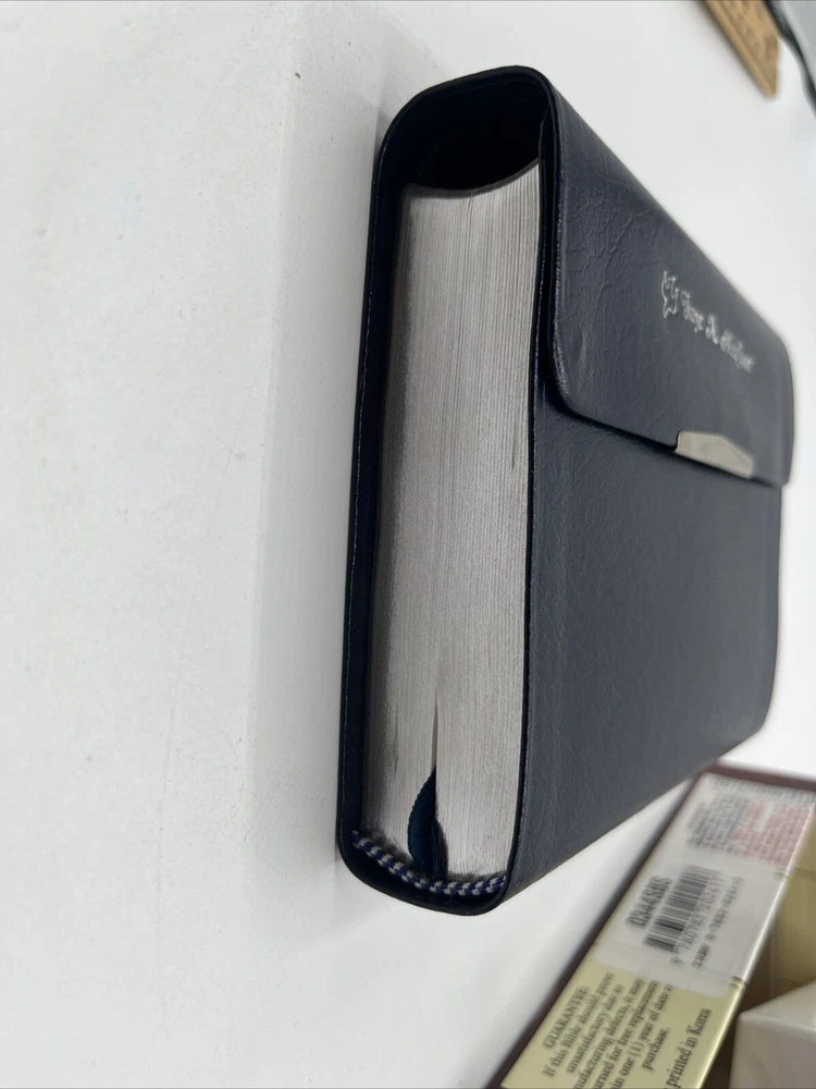 Good Pre-owned condition. With box. Does have personalization on the front and handwritten in. Blue Genuine bonded leather.