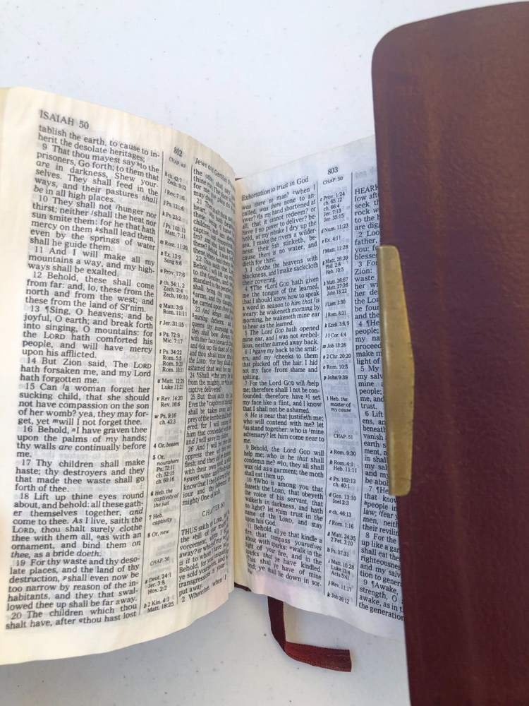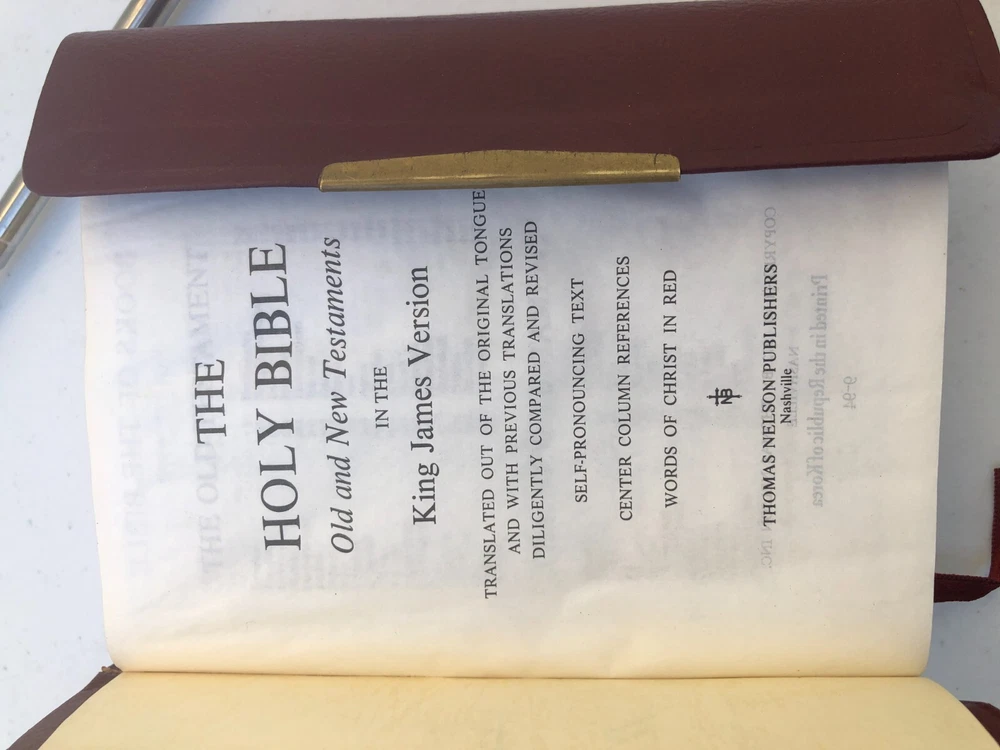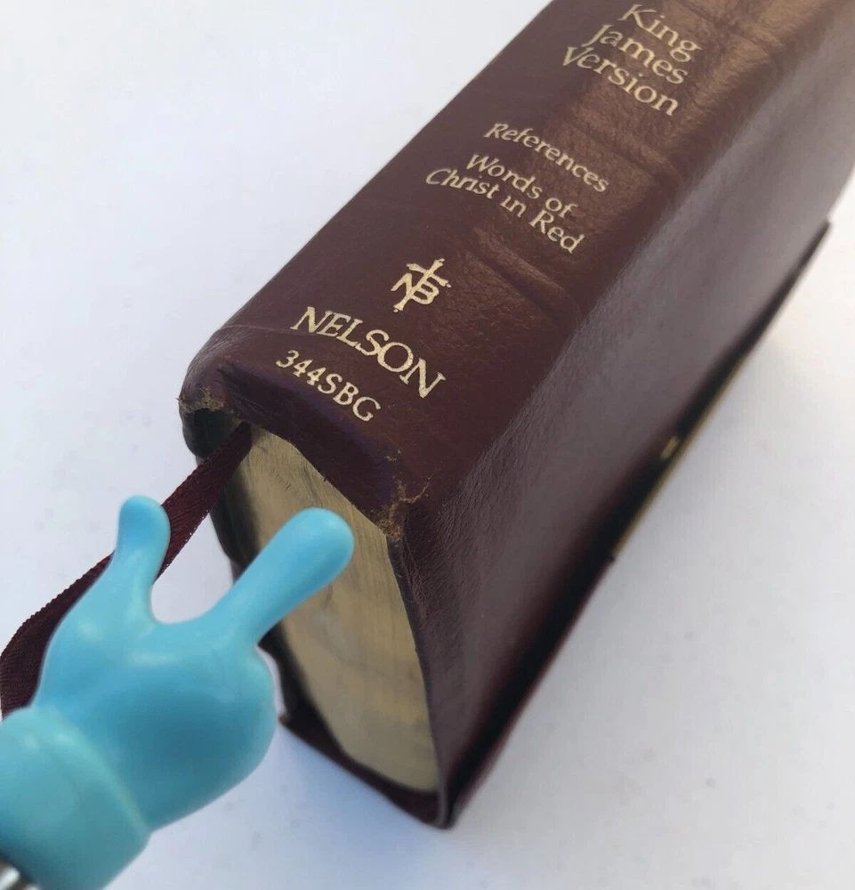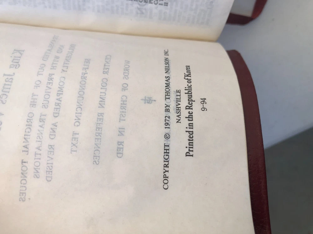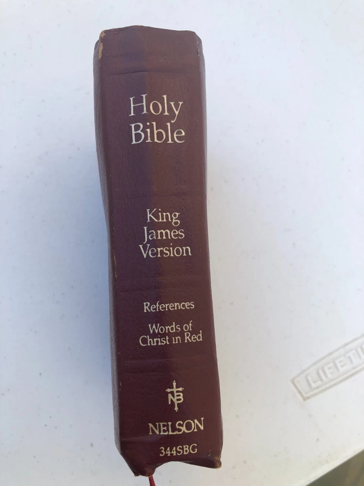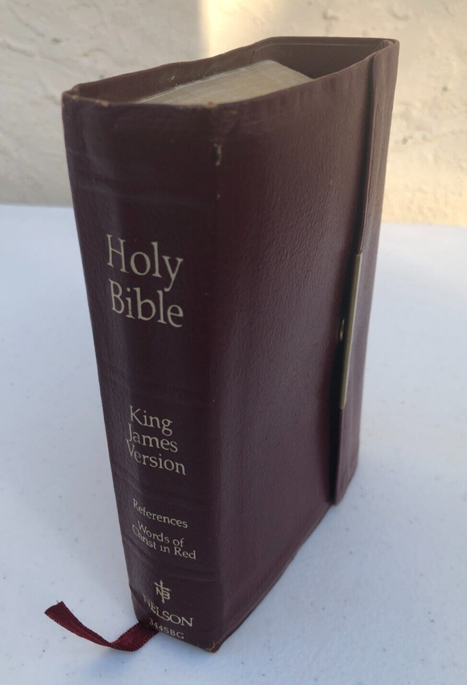 Nelson Holy Bible 344SBG KJV Compact Snap Flap Reference Red Letter Leather - Really nice condition with some wear on the corners of the leather cover and some inside (see photos). It is signed on the presentation page (see photos). Please let me know if you have any questions.