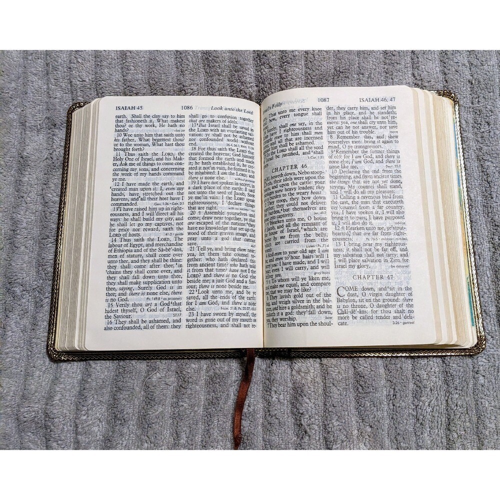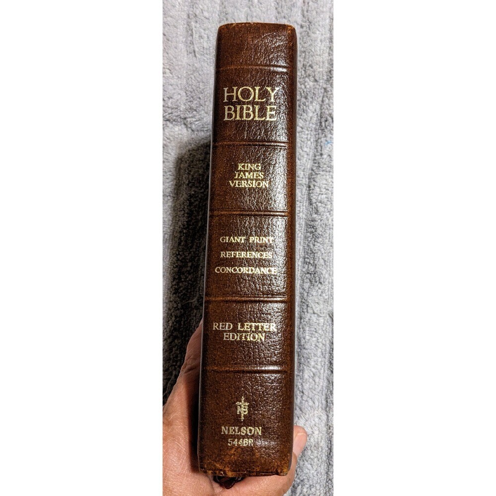 A distinguished King James Version Holy Bible, featuring giant print for comfortable reading and red letter edition for emphasized scripture. This Nelson edition includes references and a concordance, making it an excellent resource for in-depth study. The Bible also features a presentation page. Ideal for personal devotion, church services, or as a thoughtful gift for a loved one. Author: Thomas Nelson, Nelson Publishers, King James, Unknown, Various Book Title: Holy Bible King James Version Language: English, Latin, Ancient Greek, Hebrew Topic: Religion, Christianity, Biblical Studies, Theology, Spirituality Publisher: Thomas Nelson Publishers Format: Hardcover Keywords: Holy Bible, King James Version, KJV, Giant Print Bible, Red Letter Edition, Nelson Bible, Religious Book, Christian Bible, Study Bible, References, Concordance, Leather Bible, Vintage Bible, Religious Gift
