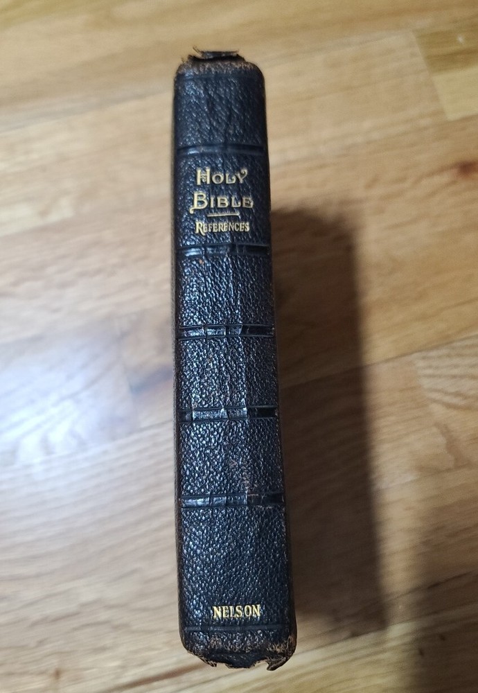 This vintage Nelson Holy Bible is a stunning piece of history with its rich black leather cover and detailed references. The craftsmanship from the early 1900s makes it feel special—perfect for collectors or those who appreciate timeless religious texts. The illustrations and well-preserved condition add to its charm. A true treasure for anyone passionate about antique Bibles!