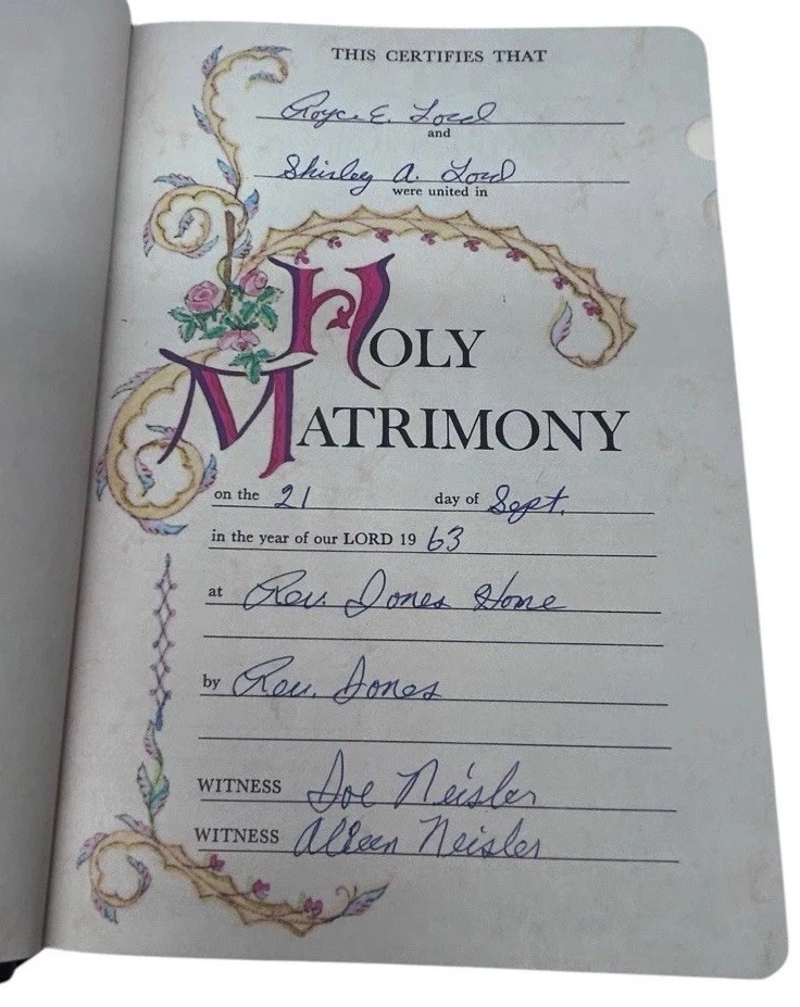 The Bible is in very good condition; the presentation and holy matrimony pages have been completed in ink but no other annotations were found.