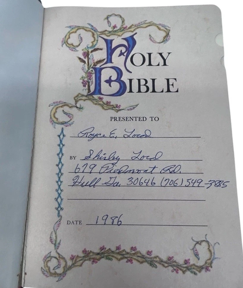 The Bible is in very good condition; the presentation and holy matrimony pages have been completed in ink but no other annotations were found....