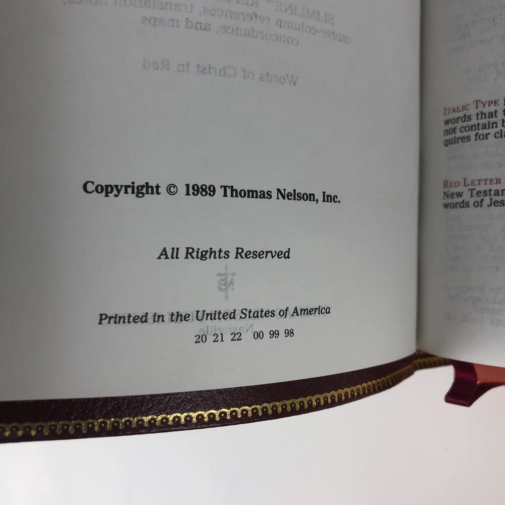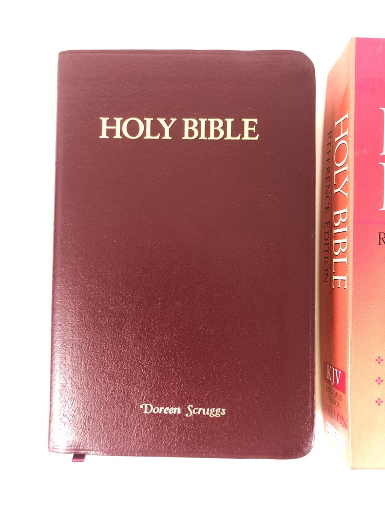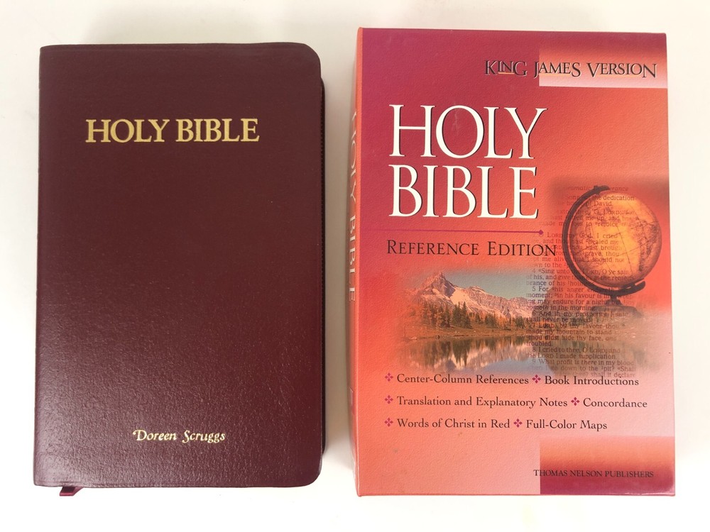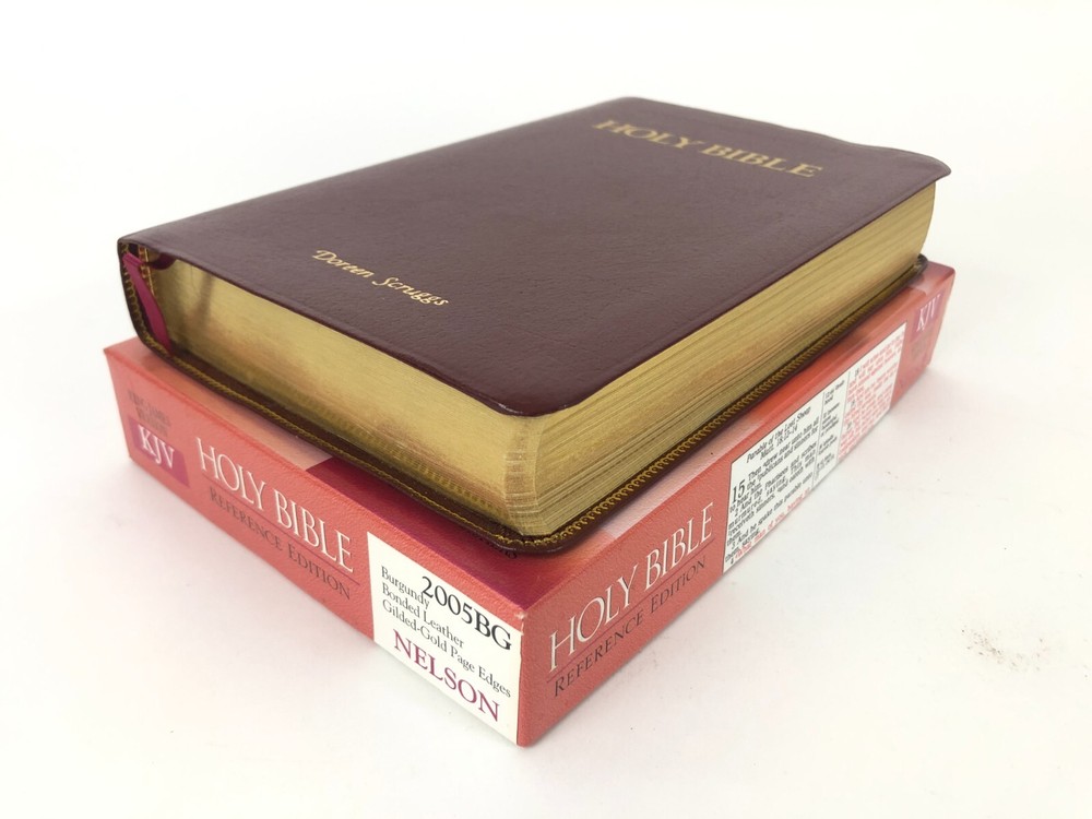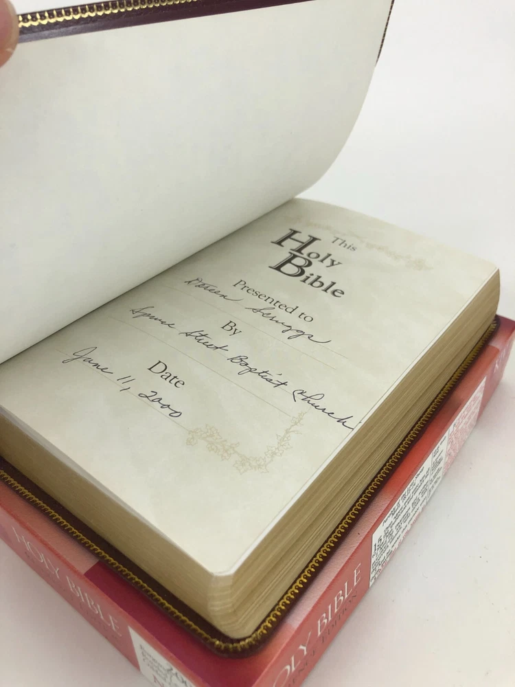 Personalized front cover and filled-in presentation page on bonded leather Bible. Very good condition otherwise with no markings observed in text and strong binding. Printed in the USA. Please see photos. Bible measures approx. 8.3 x 5.5 x 1.4 inches.