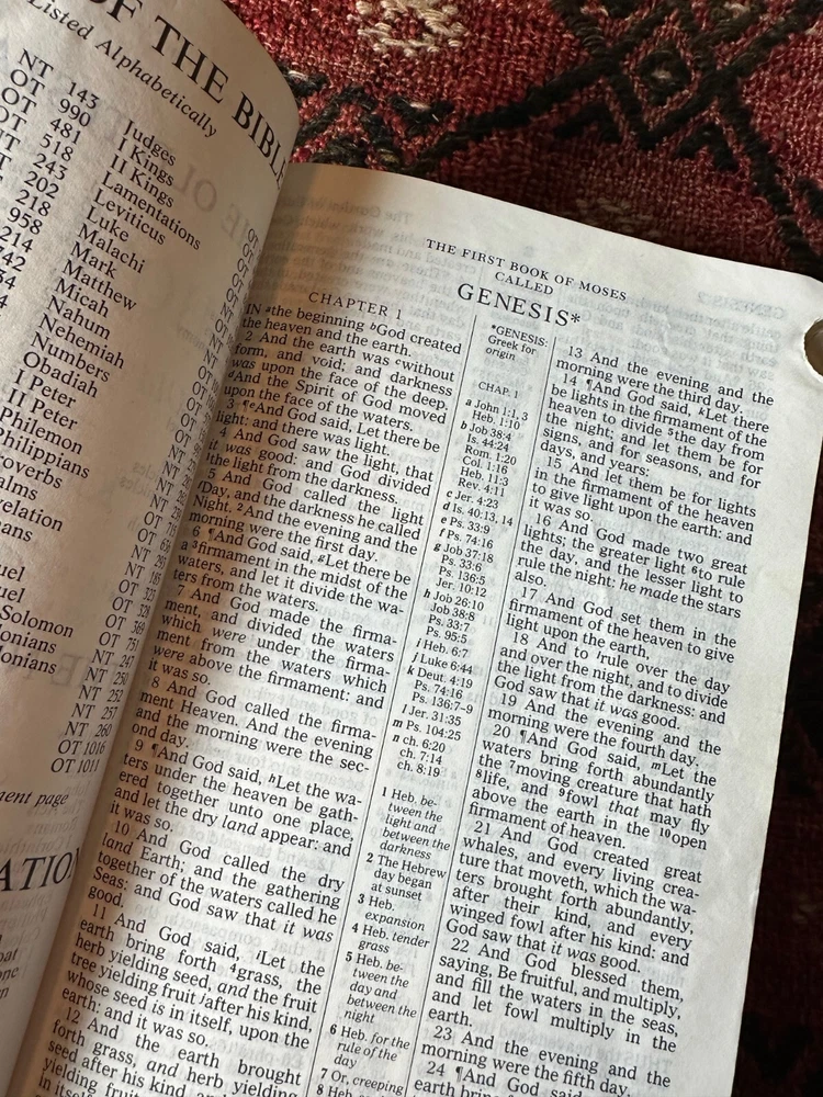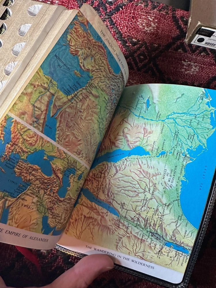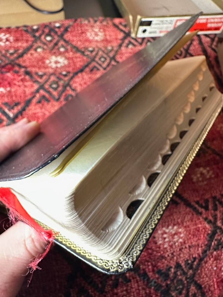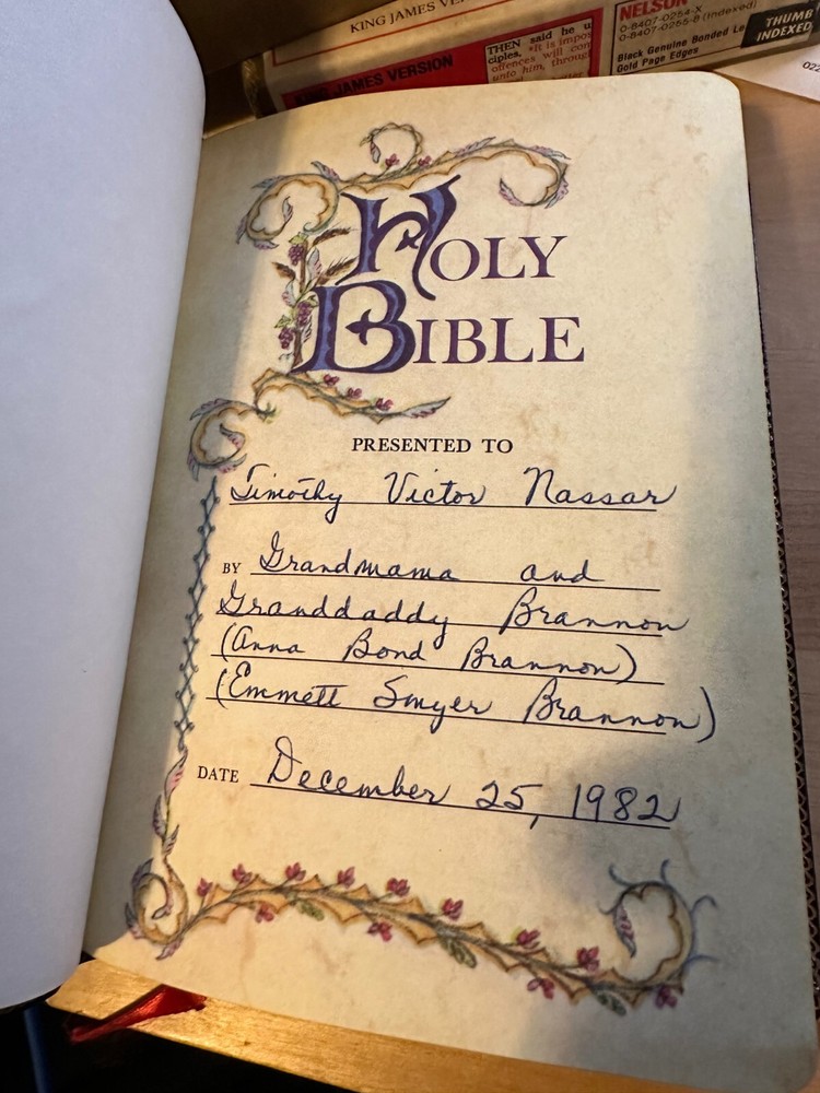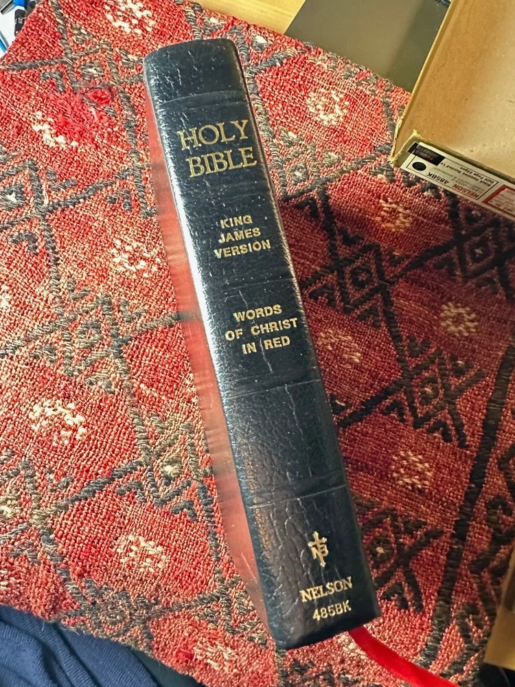 Nelson King James Version - Imperial Reference Bible Black 485BK Leather, Thumb indexed with orginal box Bible is in very good condition, some writing inside on the first page, a few wrinkled pages... normal wear for a book 50 years old -- box is functional, has two torn corners, see photos of actual item. CLEAN COPY/NO MARKINGS ON THE INSIDE