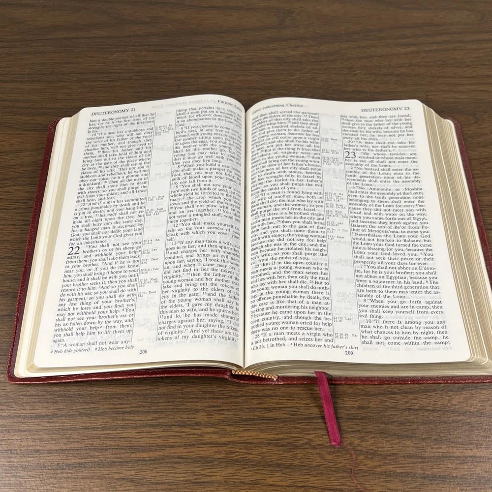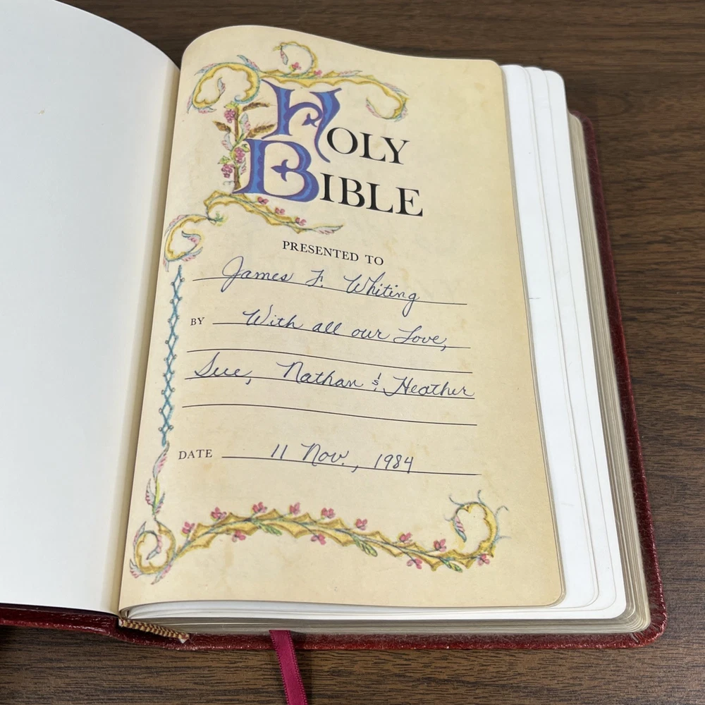 The “presented to” page has been filled out. All other interior pages are clean and free of highlighting/notes. This Bible is not red letter.