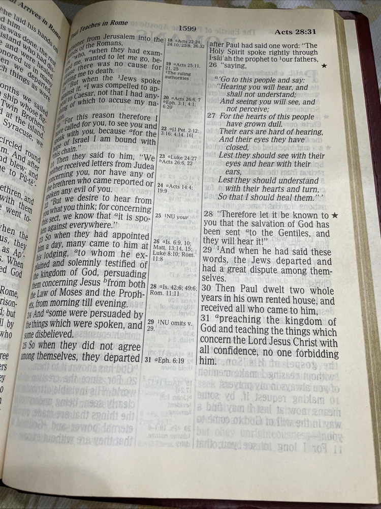 The Nelson Regency Holy Bible NKJV 991BG VTG Giant Print Center Column Reference is a vintage Bible published by Thomas Nelson in 1994. This Bible features a giant print of the NKJV text with center column references, making it easier to study and explore the scriptures. The faux leather bound format adds a touch of elegance, while the large print and red letter features enhance readability. With its focus on religion and spirituality, this Bible is a valuable resource for young adults and adults looking to deepen their understanding of the Bible and its teachings.