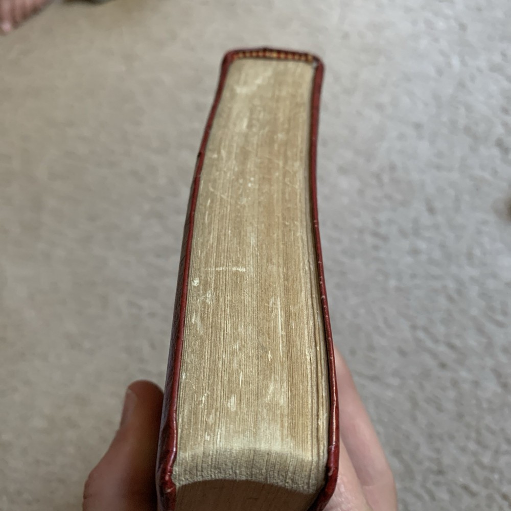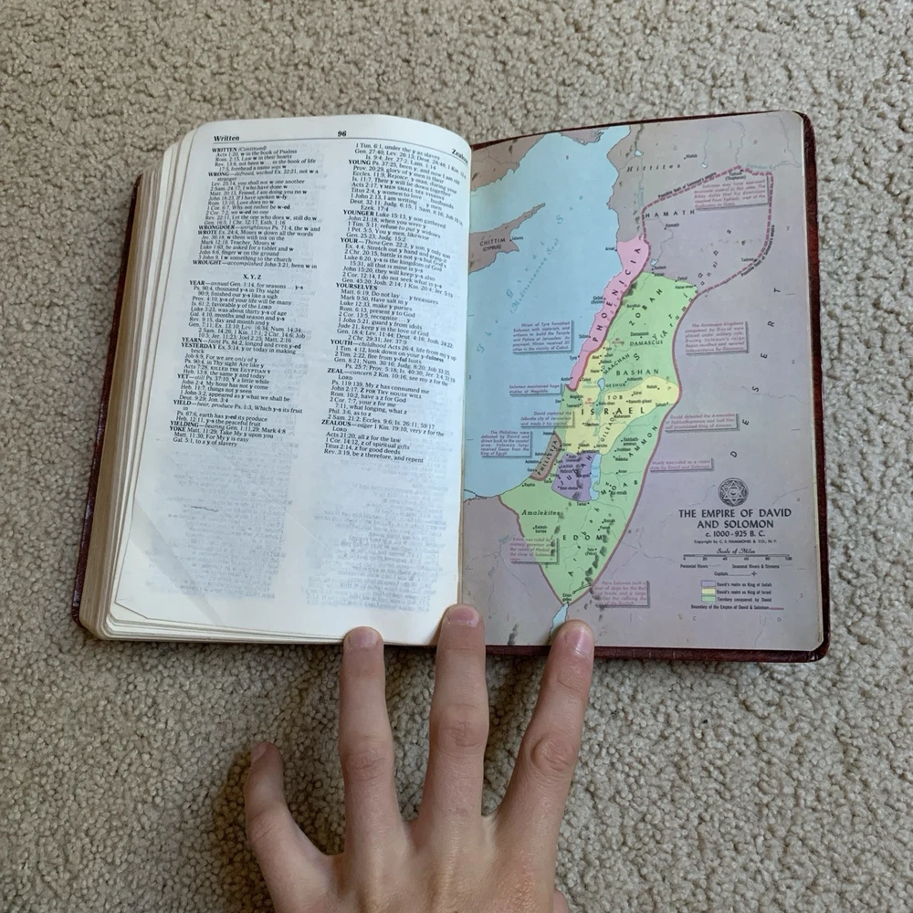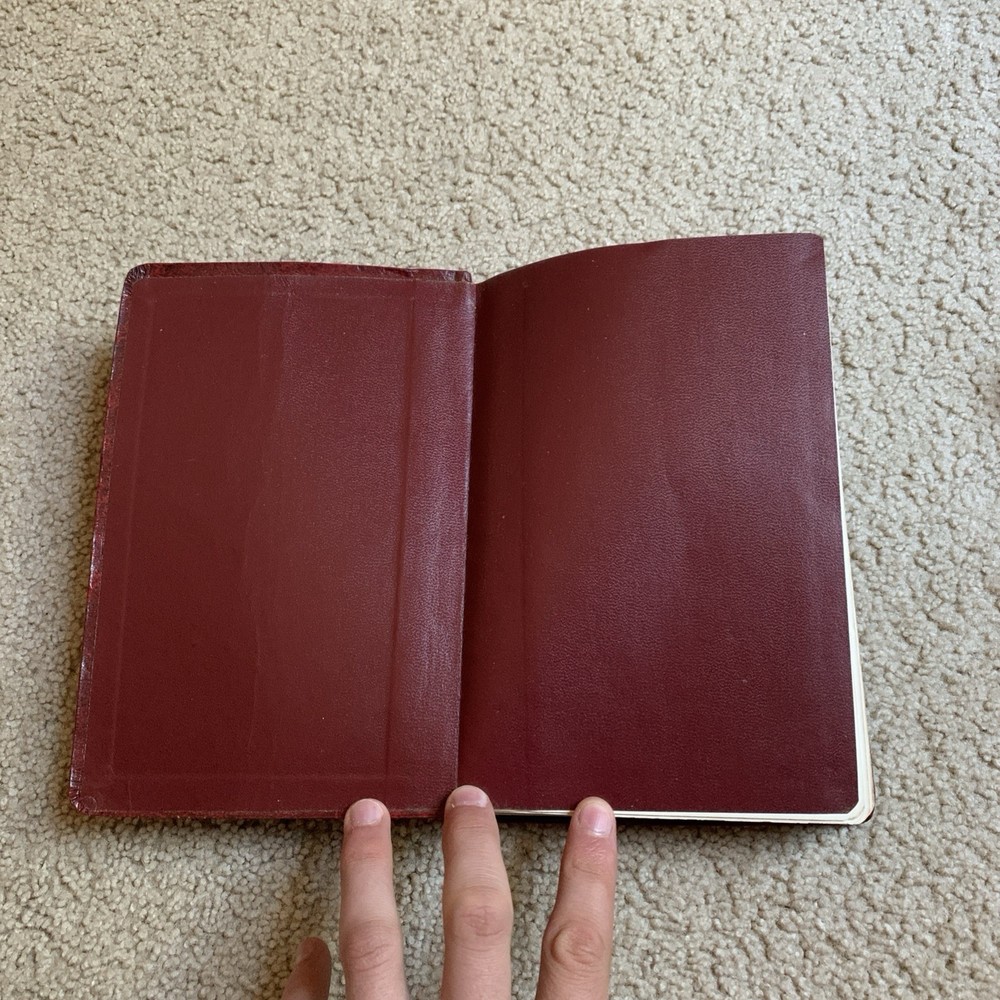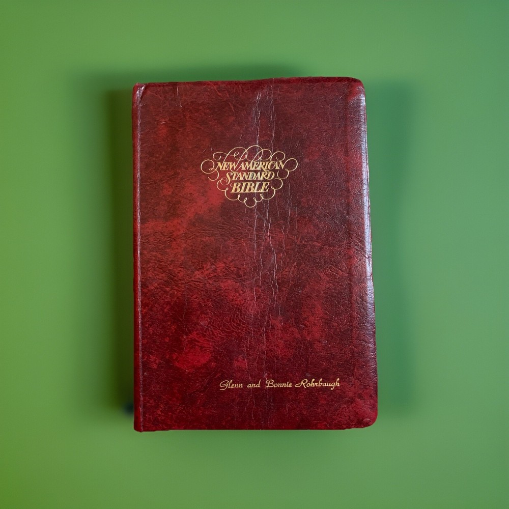 This Bible is in good condition there is a crease on the cover and the names of the previous owners on the cover also.