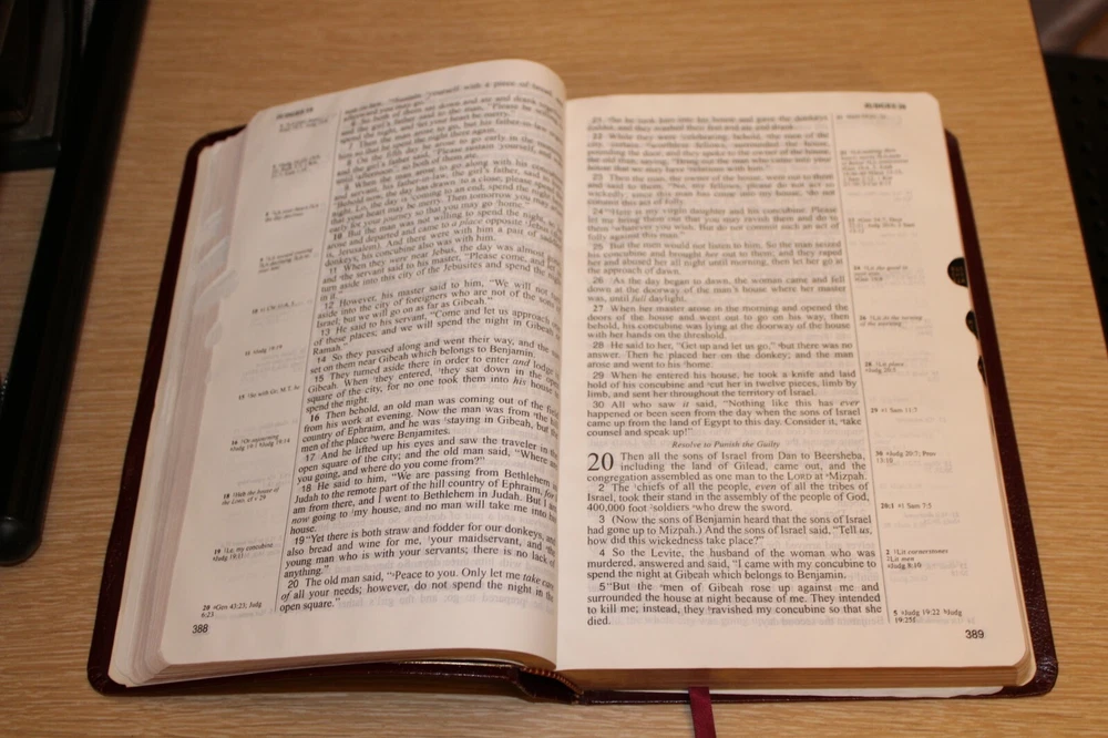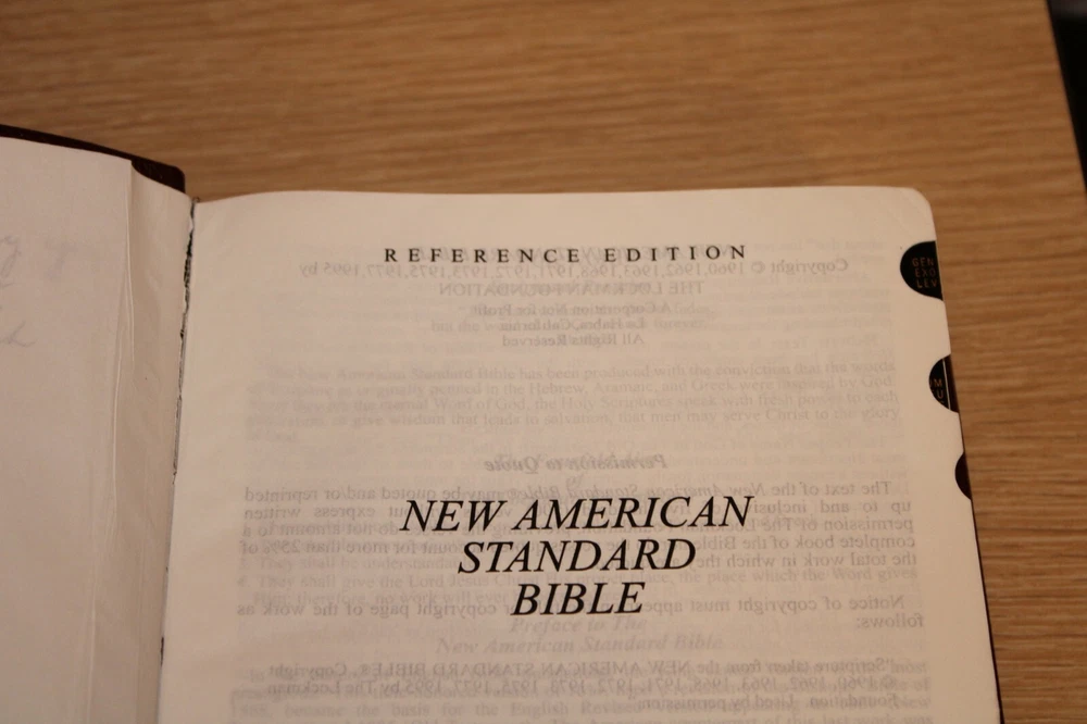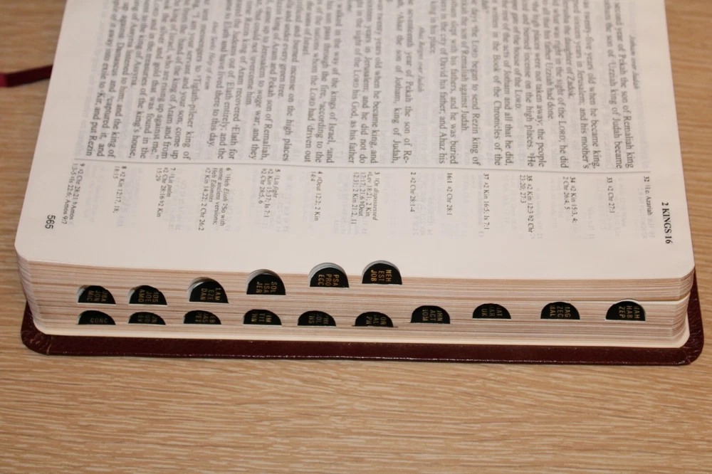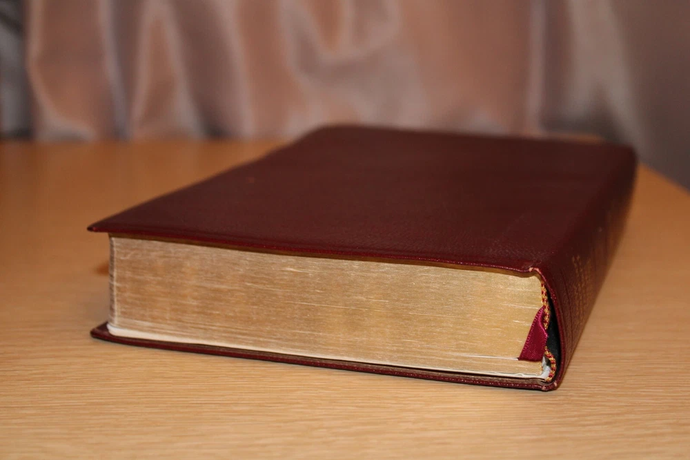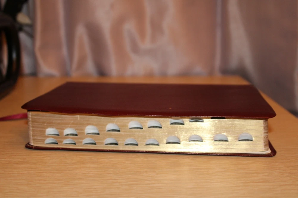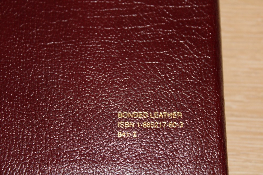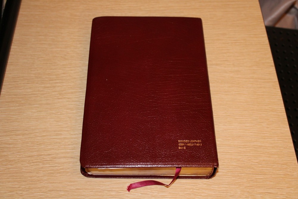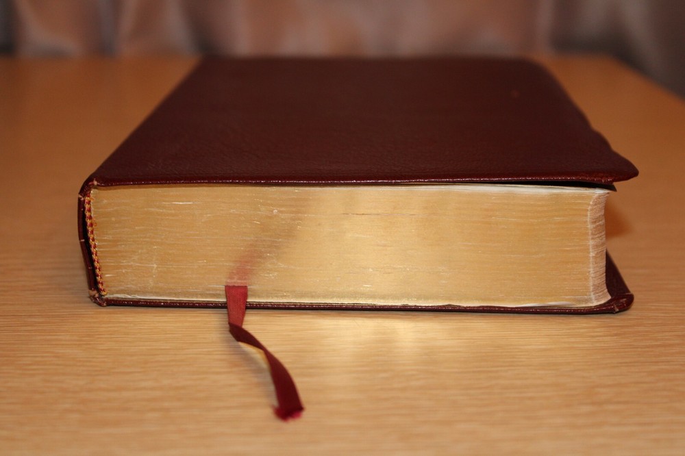 Pre-owned. Leather bound. Beautiful gold gilded pages. Thumb index tabs. Minor wear to exterior. Writing on first page. The spine is broken/become slightly detached from the leather (see last photo). Overall, acceptable condition. Please see all photos. Photos of actual item. --Please see all photos for actual representation of item condition. Photos are part of the description. Photos of actual item.--