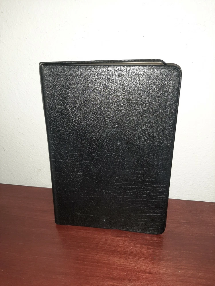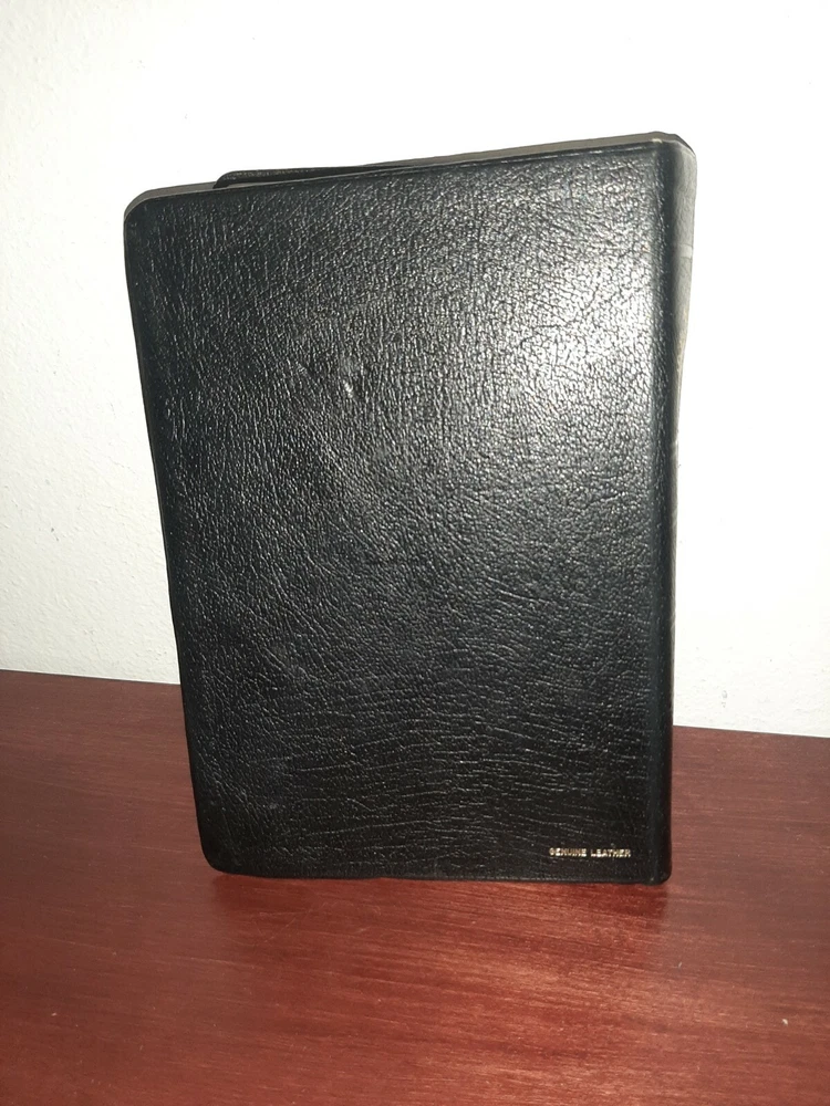 Genuine leather. 1979 2nd printing. Underlining and marginalia throughout, owner sticker on endpaper, name on endpaper, writing to notes section in rear