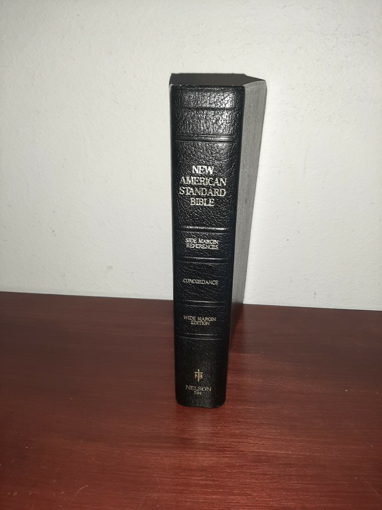 Genuine leather. 1979 2nd printing. Underlining and marginalia throughout, owner sticker on endpaper, name on endpaper, writing to notes section in rear...