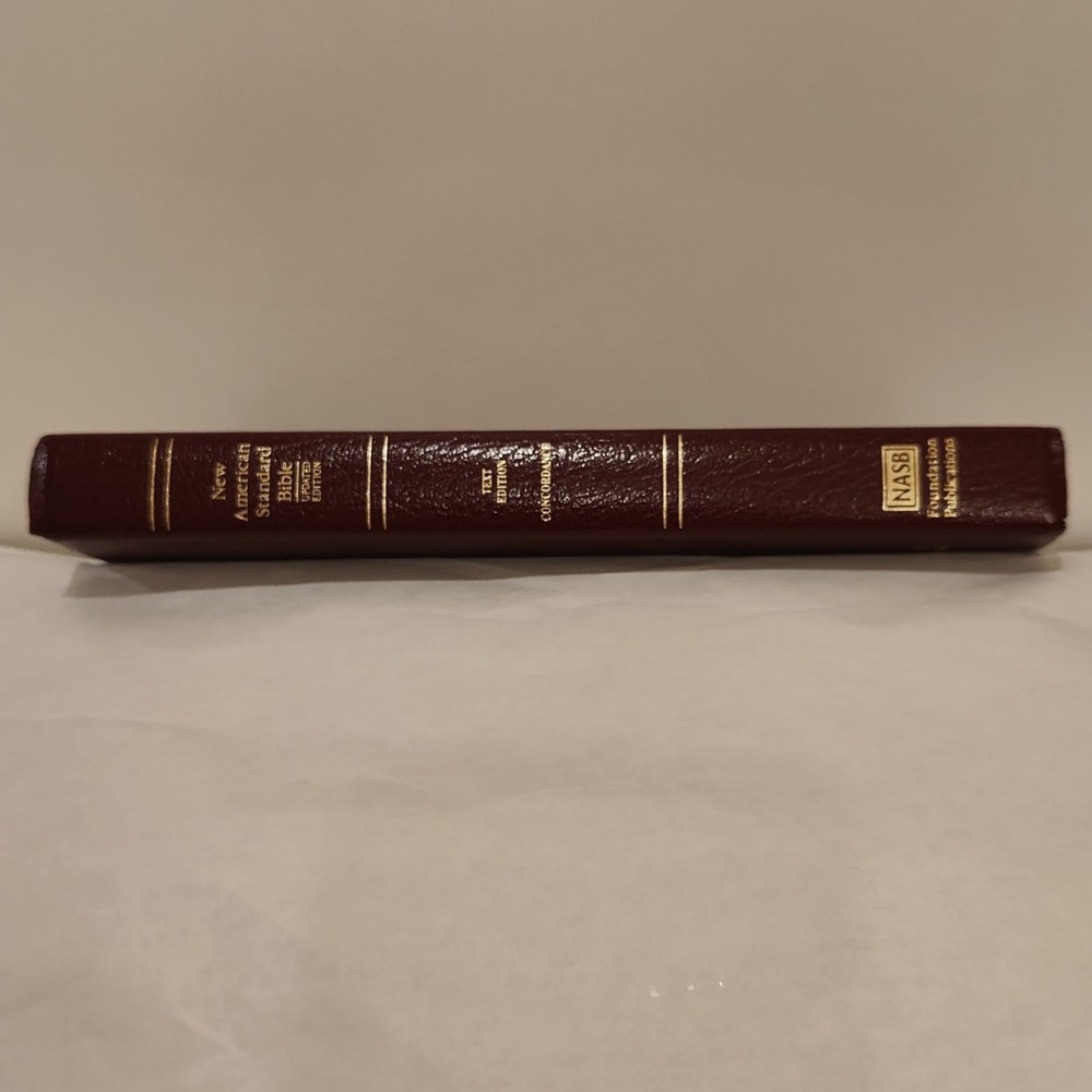 The "New American Standard Bible Updated Text Edition Faux Leather Concordance" is a vintage Bible published in 1997 by NASB in the United States. This Bible is in English, featuring a revised text edition with a faux leather imitation cover. With a total of 960 pages, it includes a concordance and is intended for a wide audience range, including young adults, children, and adults. The book covers various topics related to reference, the Bible, Catholicism, Christianity, and Jesus Christ, making it suitable for both personal and religious study. Isbn: 1885217706