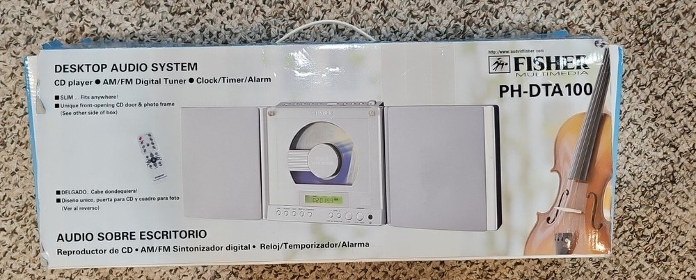 Brand new sealed some shelf wear on box only. Up for sale is a brand new Fisher Slim Audio System, model PH-DTA100. This multimedia device is perfect for anyone looking for a compact and convenient way to enjoy their favorite CDs. With a remote control and FM radio capabilities, you can easily switch between different media formats and stations. The gray color and 1st generation design give this unit a classic and timeless appearance that will fit in with any home audio setup. Whether you're a collector of vintage electronics or just looking for a reliable audio system, this Fisher unit is a fantastic choice. Its compact size and high-quality sound make it ideal for small spaces, apartments, or dorm rooms. Don't miss out on this opportunity to own a piece of audio history!