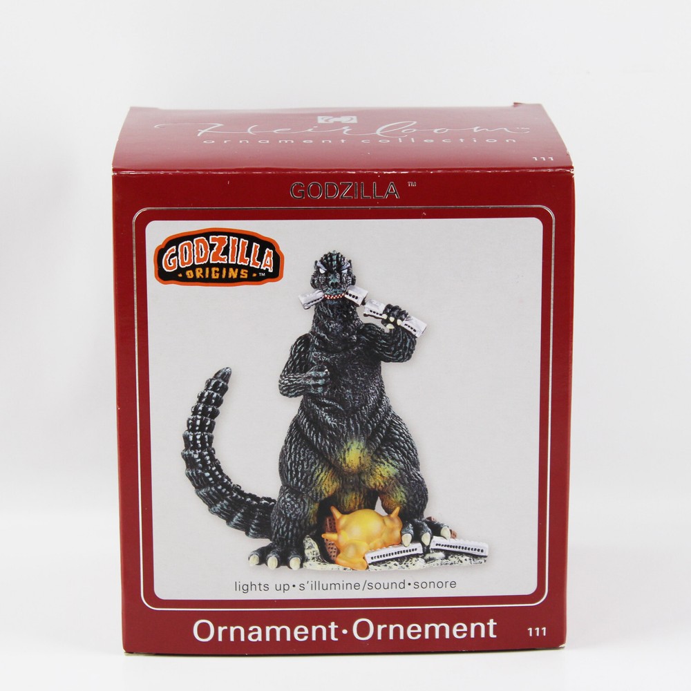 American Greetings Carlton Cards Heirloom Godzilla Origins Ornament Figure Lights And Roar Sound 111 Ornament measures approx: 4" H x 3 1/2" W Condition is New. Box shows light signs of storage wear.