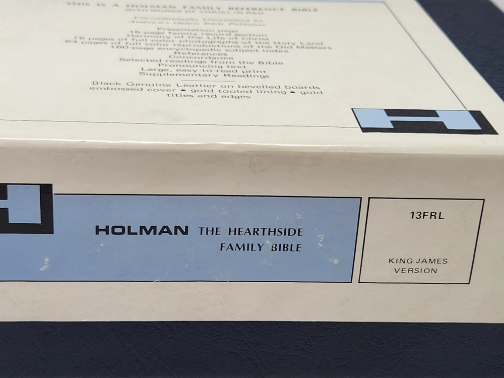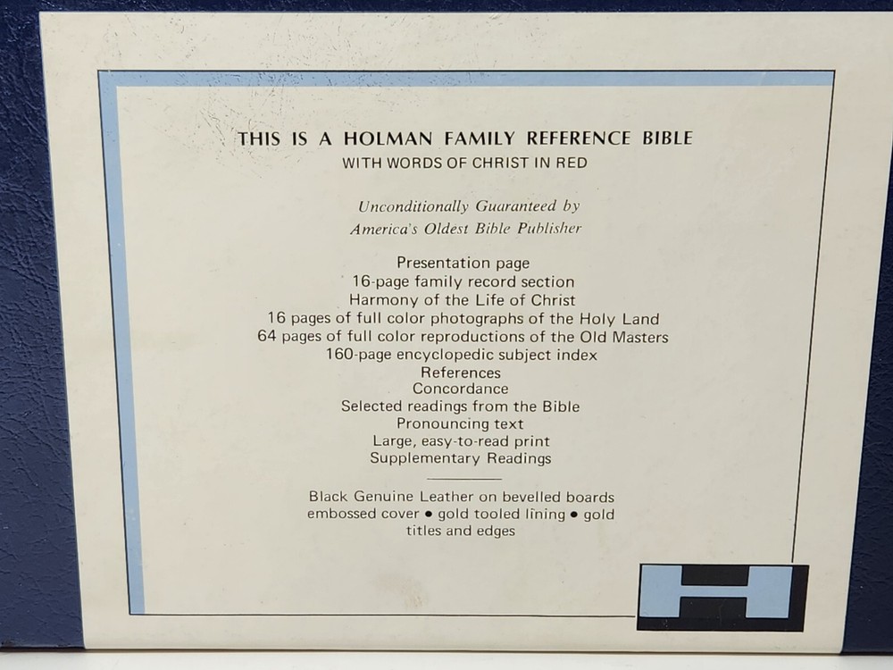New Holman Hearthside Family Reference Bible 1970 Illustrated Pictorial 13FRL Beautiful brand new vintage Bible. Gold edges with genuine leather on beveled boards. Illustrated and pictorial. Please se...