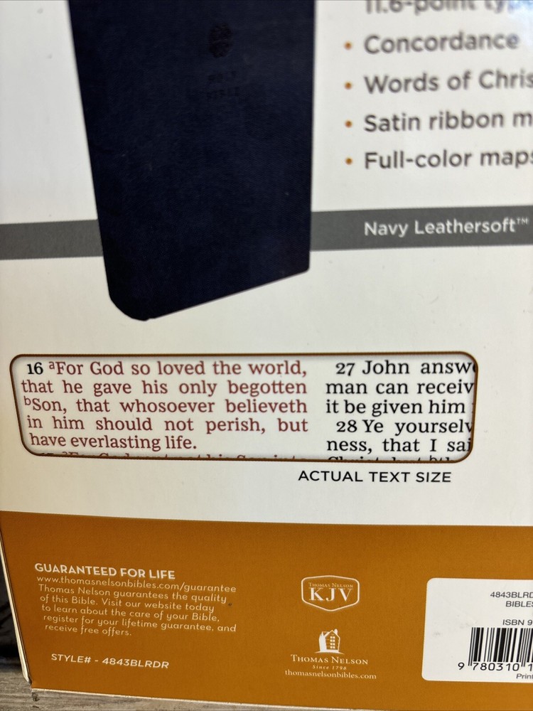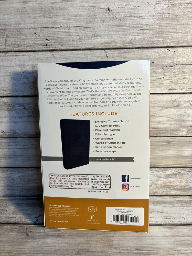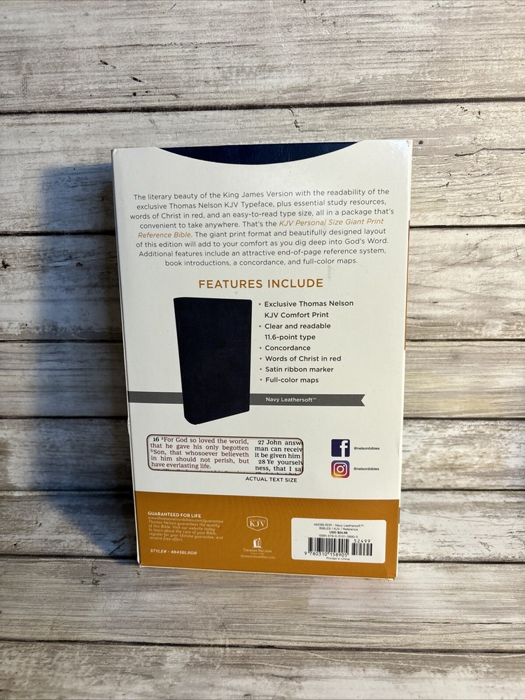 Immerse yourself in the spiritual richness of the KJV Personal Size Giant Print Reference Bible from Thomas Nelson. This elegant edition, bound in supple Navy Leathersoft, offers a comfortable, intuitive reading experience with its large print text. It's meticulously crafted to enhance your engagement with religious history and Christian teachings, making it an essential addition to any Bible scholar's collection or a thoughtful gift for those seeking a personal spiritual guide. Published in 2017, this Bible is a contemporary rendition of the classic Thomas Nelson imprint, reflecting a commitment to quality and reverence for the original English language of the scriptures. It stands as a testament to the timeless appeal of nonfiction works that illuminate the soul and enrich our understanding of faith.