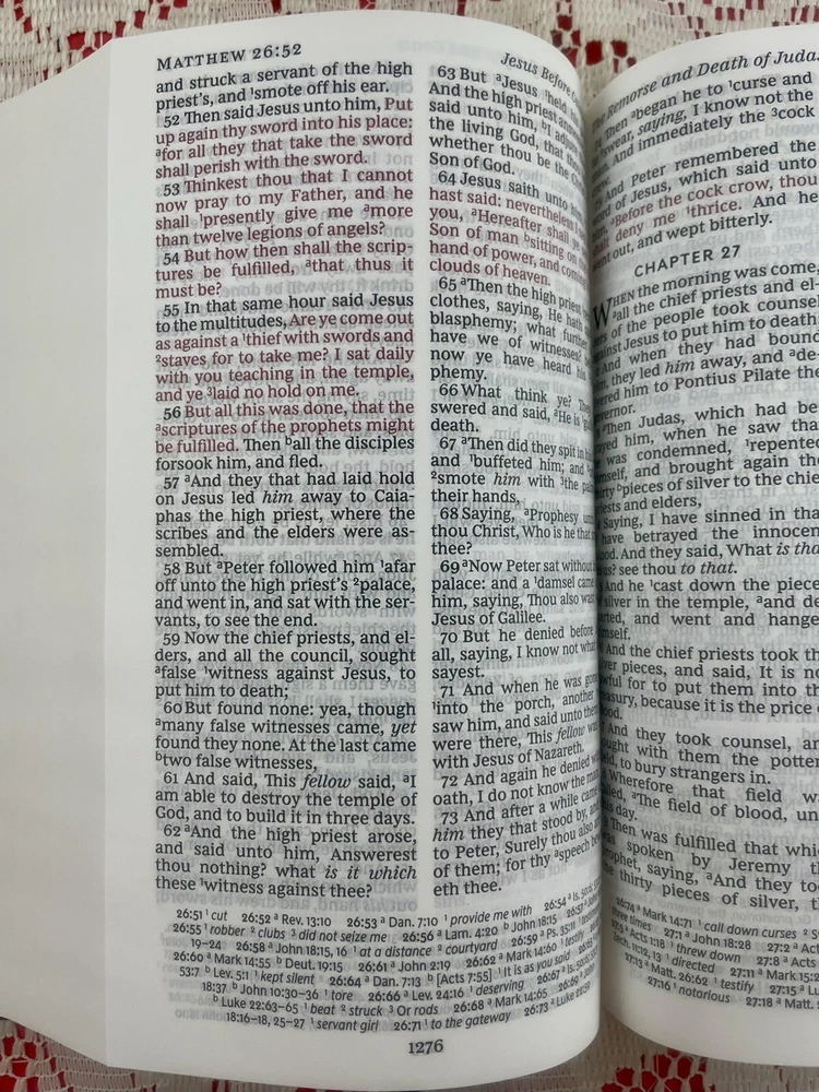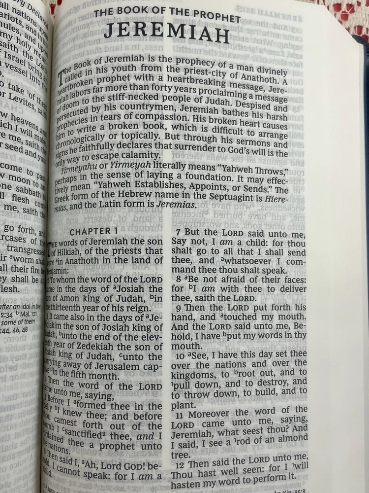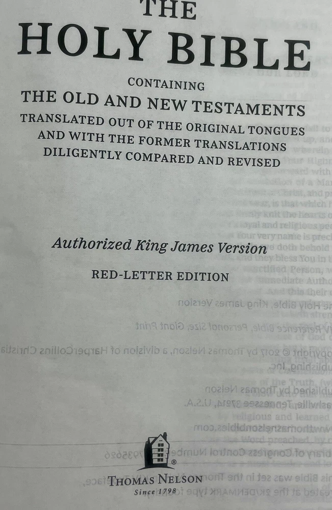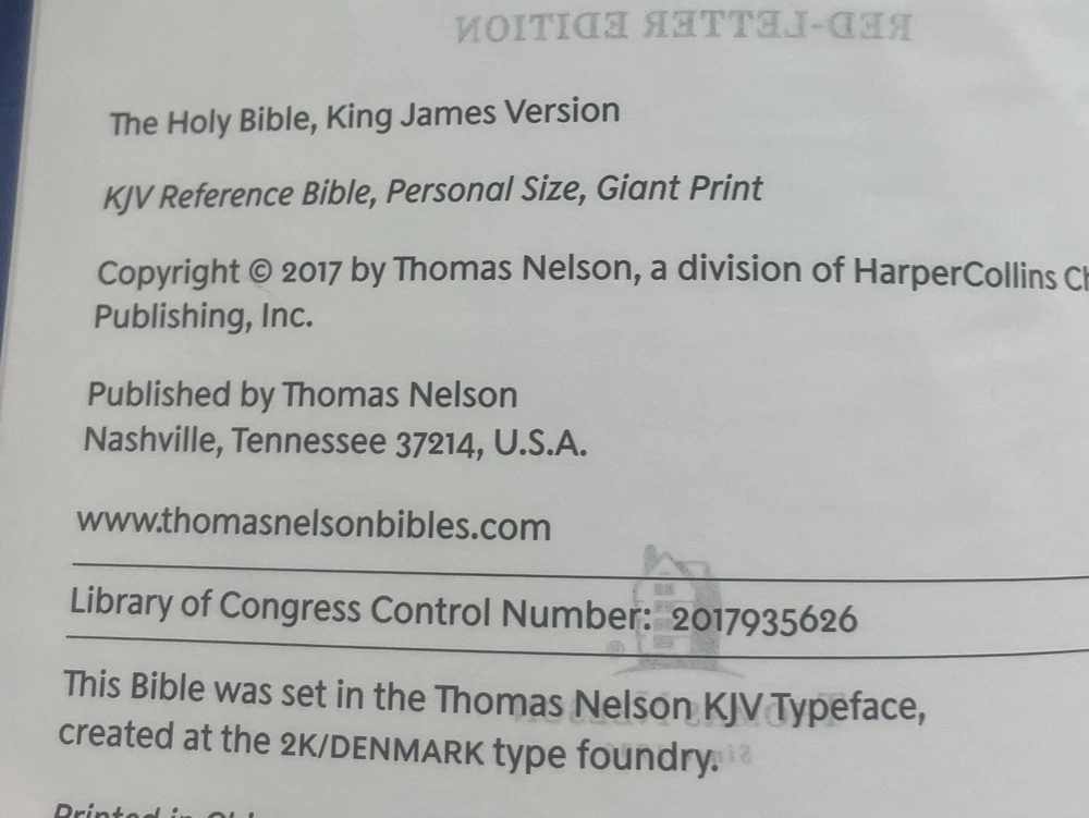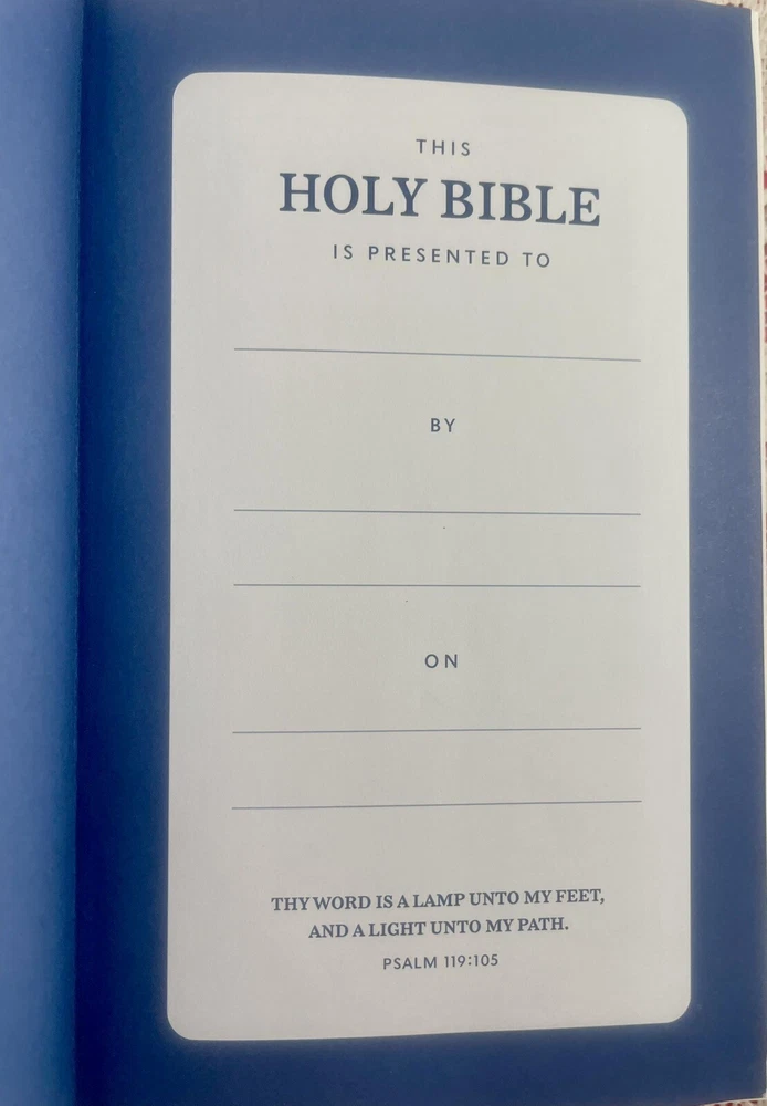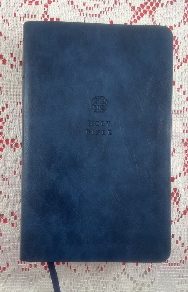 Thomas Nelson King James Version Personal Size Reference Bible Published in 2017 Navy "Leathersoft" Cover Exclusive easy-to-read "comfort print" (11.6 Point Type) End of page reference system Concordance Full-color maps Book introductions Words of Christ in red Satin marker Navy blue Measures approximately 9" x 5.5" "Like New" condition except for one small mark on outer edges of pages at bottom of Bible (does not affect inside pages - see photos). Otherwise, Bible looks like it just came out of the box. Pages are clean and crisp. No marking or any damage. Cover looks new. Please see all photos. Thanks for looking! Please check my other listings. I gladly combine shipping for multiple purchases. If you are purchasing multiple items, please email me prior to making payment so that I can send you a revised invoice that combines shipping and saves you money. Next-day shipping!