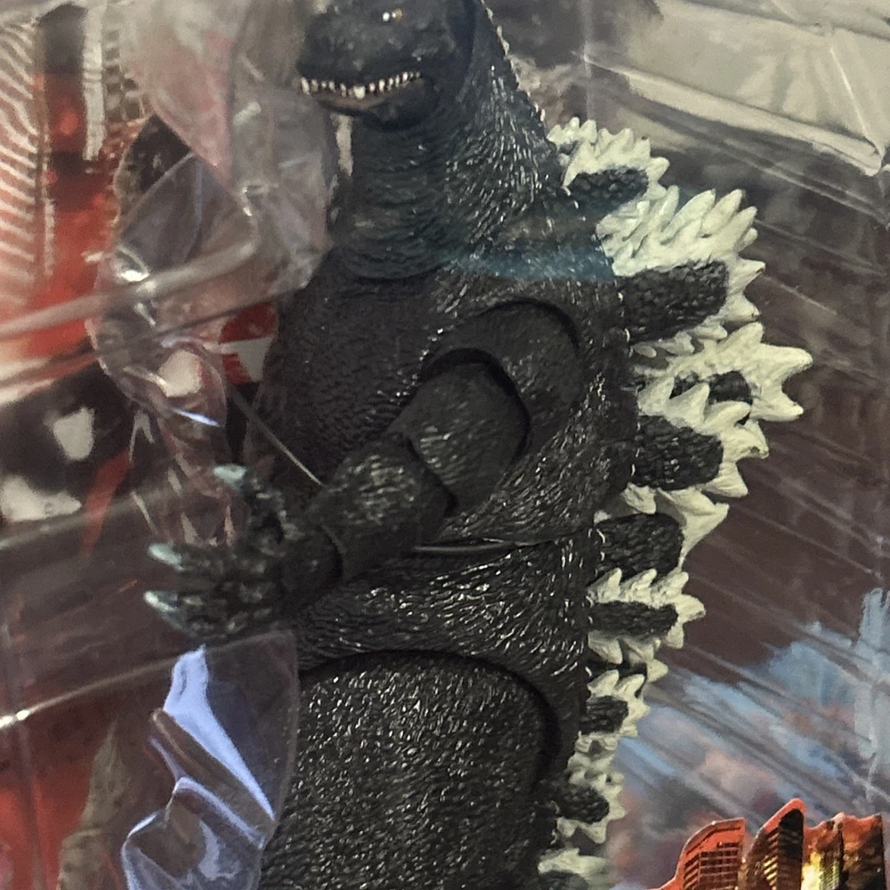 Up for sale is a brand new NECA Godzilla Classic Series action figure, featuring the iconic monster in his classic design from the movie "Godzilla vs. SpacGodzilla". This highly collectible item is made of durable plastic and stands at approximately 9 inches tall. The figure comes with custom features and is part of the Video Games theme. It was manufactured in 1994 and is part of the 2002-Now time period. The age level for this action figure is 14-15 years. This item is perfect for any fan of the Godzilla franchise and would make a great addition to any collection.