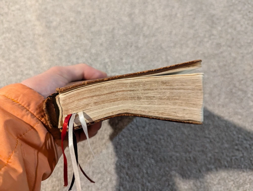 This has wear and the binding is in poor shape in the front. See pictures for details....
