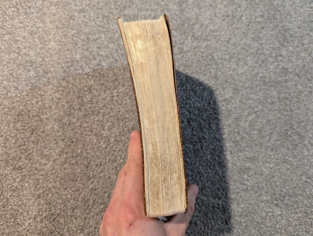This has wear and the binding is in poor shape in the front. See pictures for details.