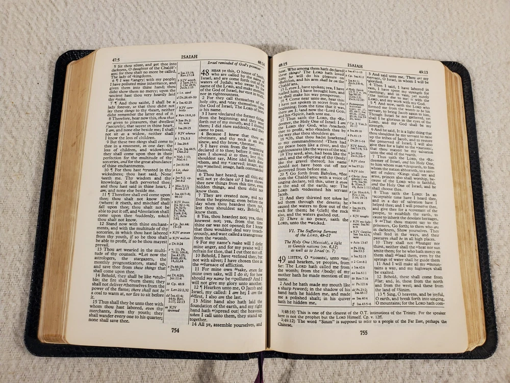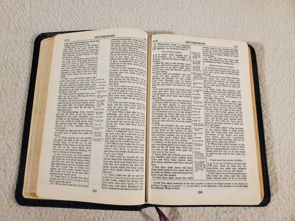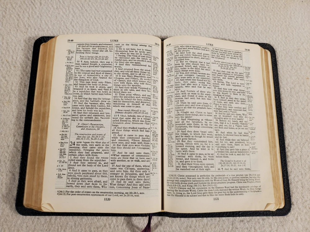 See Photos. Comes from an immaculately clean nonsmoking home. In good condition. Shows some age. Tear on cover page. Some writing in Revelations. Rest of pages are clear and clean. Binding is solid. Seller Lot #22062. Listed shipping costs are for the lower 48 (USA) states. For the Eastern US, there is a strong possibility that you will get it with 2 or 3 day shipping. We ship internationally and encourage buyers to use the eBay Global Shipping Program. If there is a difference between the item description and the photos, use the photos to resolve. Pictures are of the exact item(s) you will receive. Should you be moved to give positive feedback, expect thoughtful and kind positive feedback in return. Thanks for looking at our listing! Check out other vintage/antique items we have at http://stores.ebay.com/Suburbia-Harvest?_rdc=1.