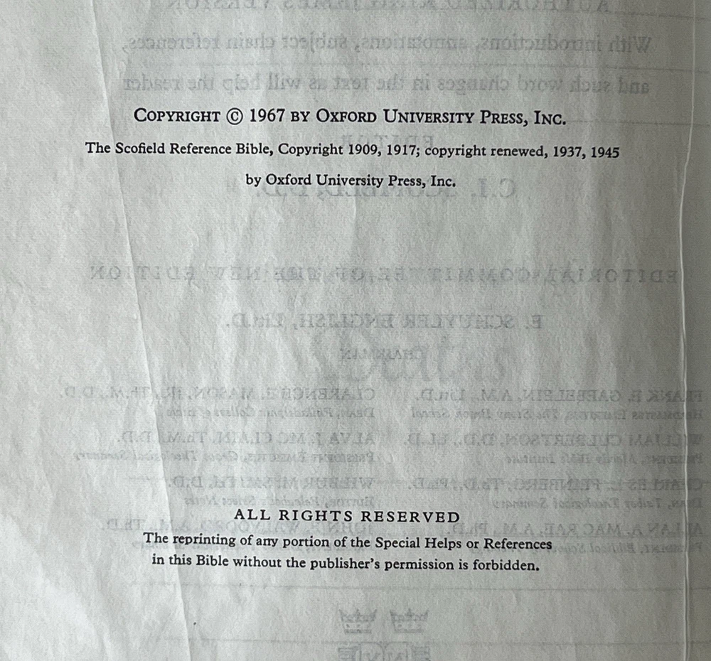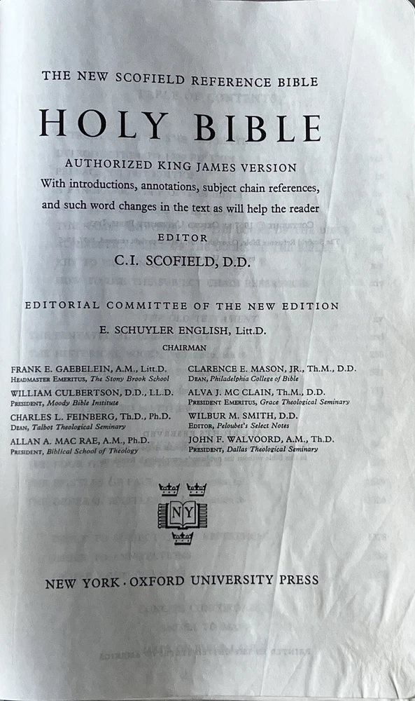 New Scofield Reference Edition Holy Bible Oxford KJV 1967 Leather VG Condition Some writing on first page. No highlighting or underlining. See pictures for additional information and condition.