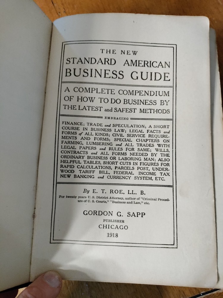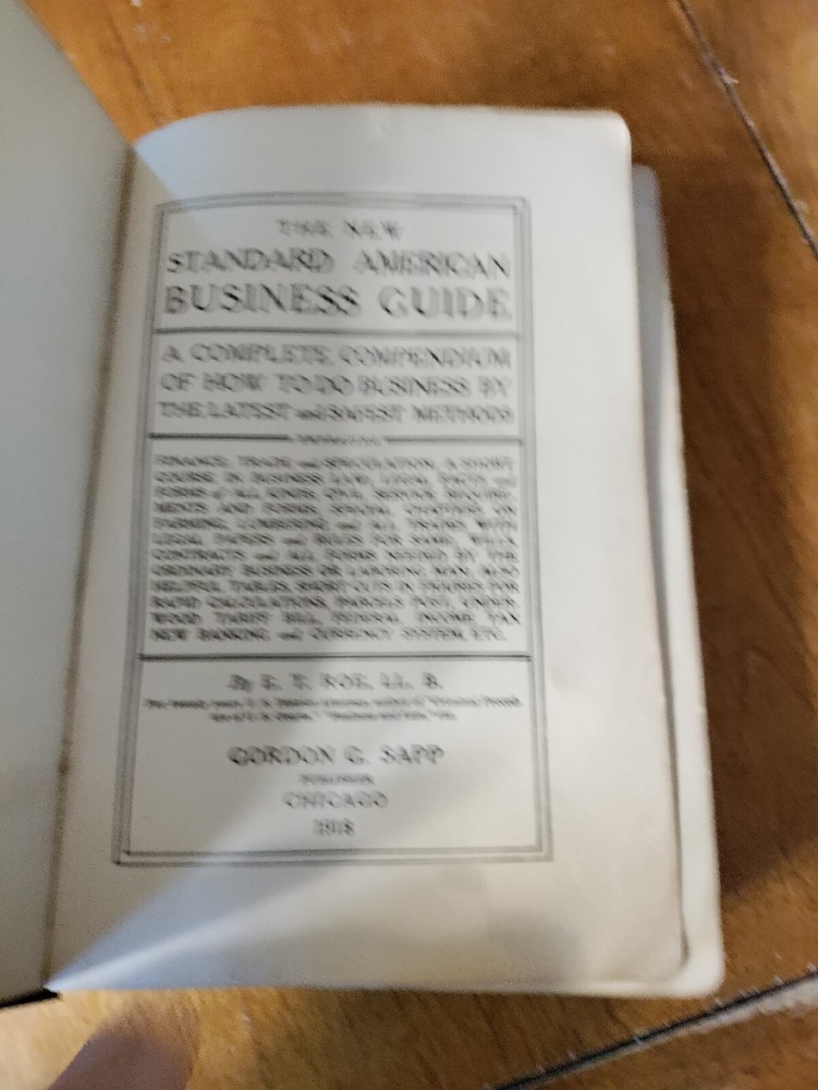 New Standard American Business Guide Gordon Sapp Publisher 1918 512 Pages. Rough antique book. Some water spots. Book is intact. Let me know if you have any questions