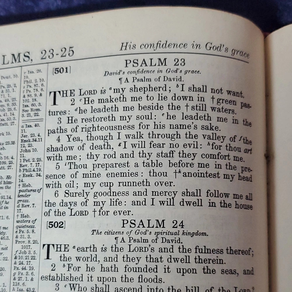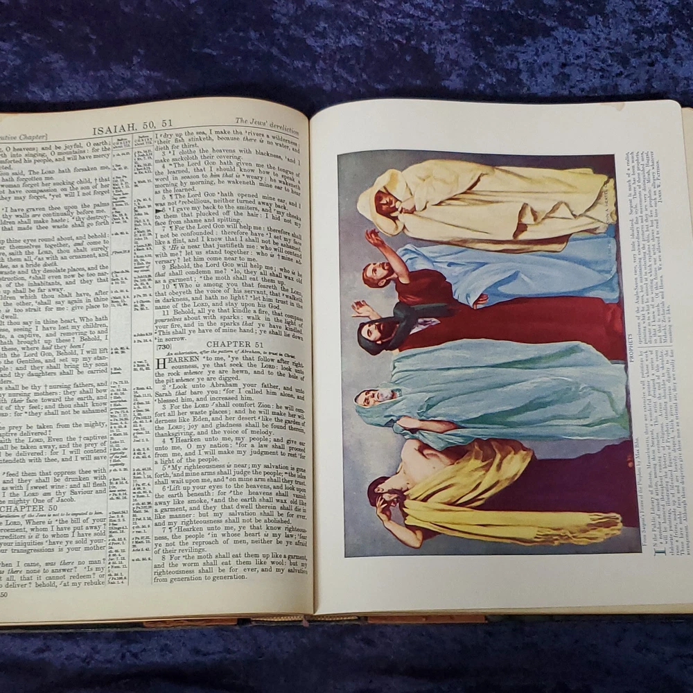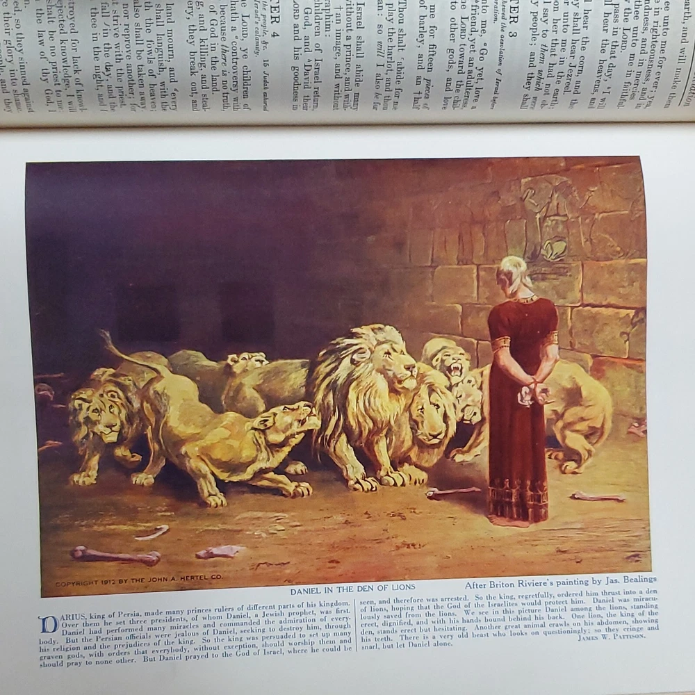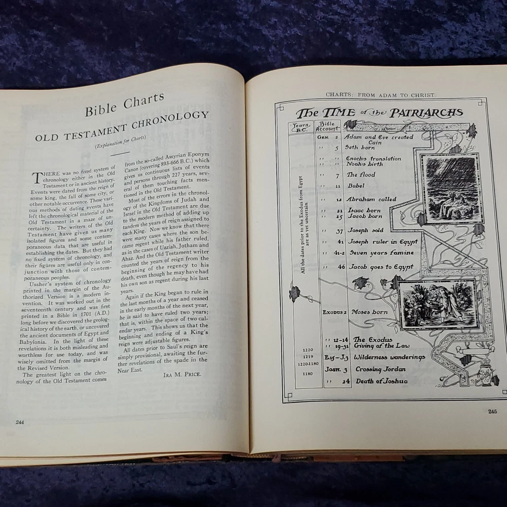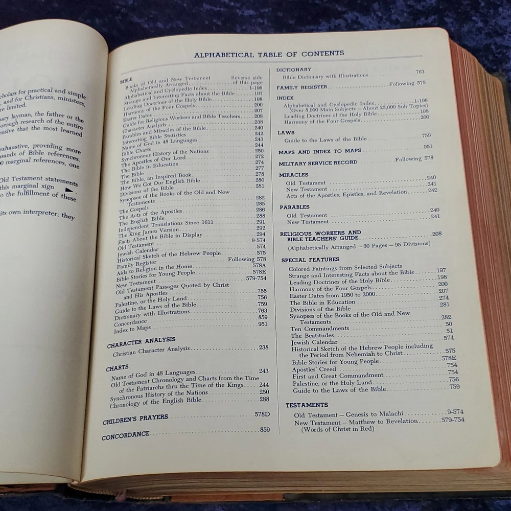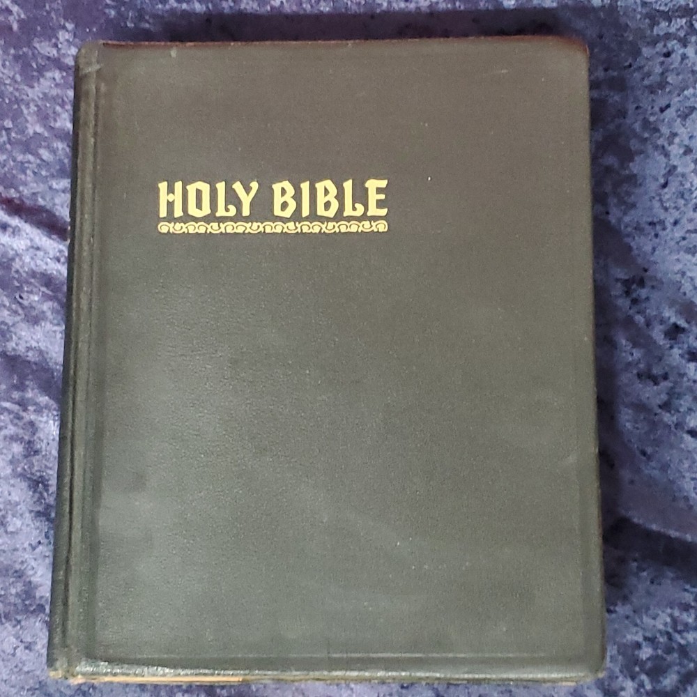 Hertel Blue Ribbon Holy Bible New Standard Reference 1955 Edition. There is no writing found in the Bible. In awesome condition. Church stamps on first and last pages. Table of contents: Bible, character analysis, charts, children's prayers, concordance, dictionary, family registry, index, laws, maps, military service record, miracles, parables, religious workers and Bible teachers Miracles, ... Special features: colored paintings from selected subjects, strange and interesting facts about the Bible, leading doctrines of The Holy Bible, harmony of the 4 Gospels, the Bible in education, divisions of the Bible, synopses of the books, 10 commandments, the beatitudes, Jewish, Apostles creed, Jewish calendar, et cetera. This is a large heavy rather well preserved vintage book. I enjoyed looking through the many extras that they've included. Very interesting. 68 years of use has left it's evidence, not perfect condition but still worth it. Weight is 6 lb 15 oz before packaging. 9½ × 11⅝ × 2¼" Offers always considered. Thank you for looking. PS1-3ca.091223.34.9