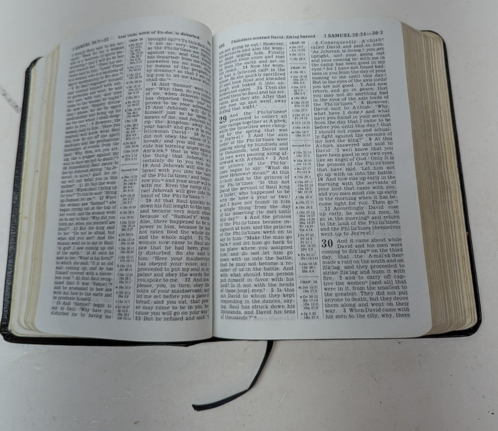 This vintage Bible is beautifully crafted with a classic black leather cover that feels durable and elegant. The text is clear and easy to read, making it perfect for study or reflection. The seller provided excellent service, ensuring the item was clean and well-packaged. A great addition to any collection for those who appreciate a timeless scripture edition. Highly recommended!