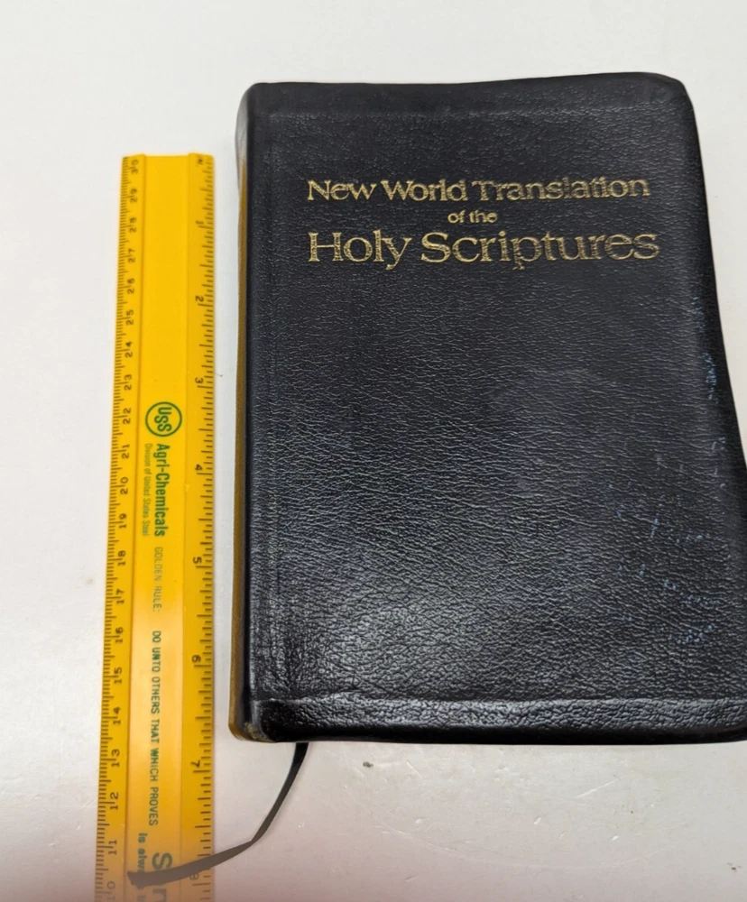 New World Translation of the Holy Scriptures with 1984 Watch Tower Black Leather New World Translation Holy Scriptures 1984 Watch Tower Black Leather Vintage Bible Ruler not included If you have any questions, don't hesitate to contact me and I'll get back with you right away. I strive for customer satisfaction and take great pride in my customer service. This can be seen in my customer reviews. Properly cleaned per eBay policy. 051425