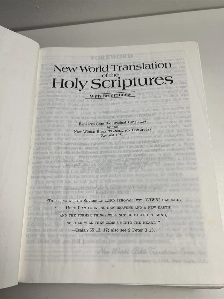 This hardcover book is a valuable addition to any reference collection. The New World Translation of the Holy Scriptures with References 1984 is a revised edition that provides a comprehensive understanding of the Bible. The book is 9 inches long and 2 inches high, with a faux leather bound cover that adds to its elegance. The book is in English and was published by the Watchtower Bible and Tract Society of New York, Inc. It is an non-fiction narrative that provides a detailed exploration of the Bible, with references that help readers understand the context of the Scriptures. This book is perfect for young adults, ages 4-8, ages 9-12, and adults who are interested in religious and spiritual topics. The book is not personalized, inscribed or signed, and does not come with an ex libris.