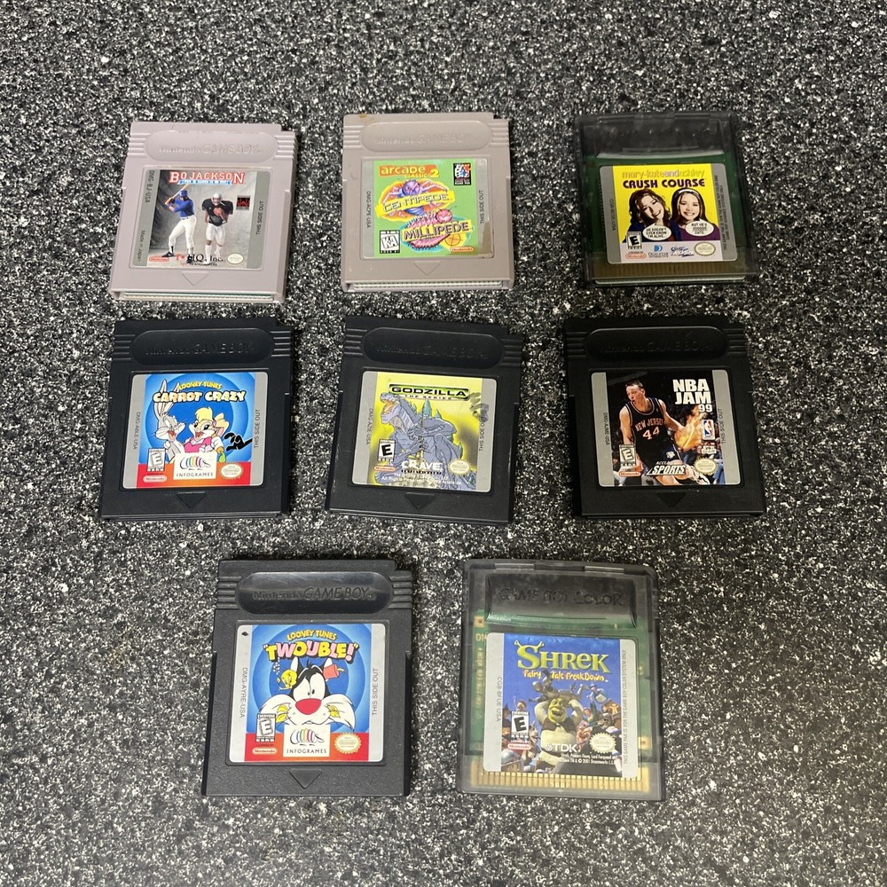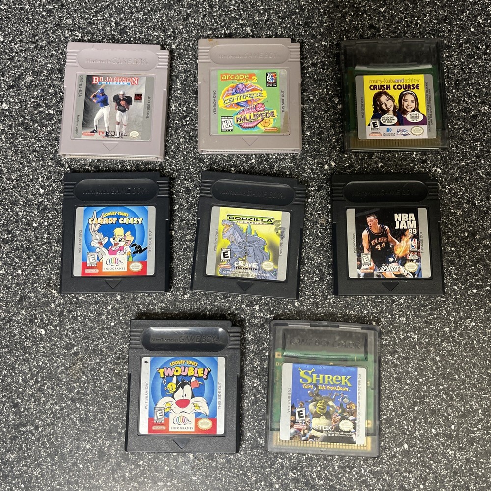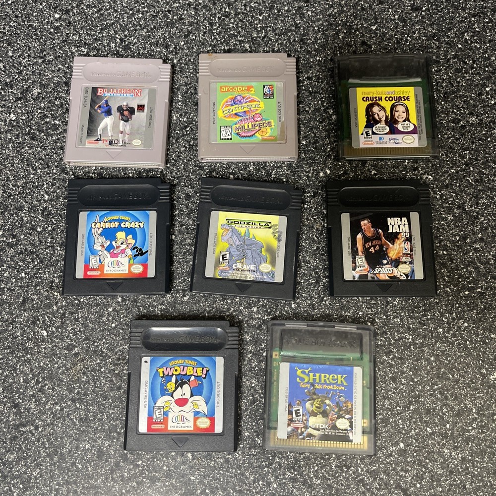 This is a fantastic lot of 8 Nintendo Game Boy games that will have you entertained for hours on end! Included in this lot are some classic titles such as Godzilla, NBA Jam, Shrek, Bo Jackson, and Carrot Crazy, among others. These games are perfect for fans of family/kids, racing, and sports genres. Each game in this lot is compatible with the Super Game Boy feature, making it even more enjoyable to play on your Nintendo Game Boy. Whether you're a long-time fan of these games or a newcomer to the Nintendo Game Boy world, this lot is sure to provide hours of entertainment. Don't miss out on the chance to own these fantastic games today!